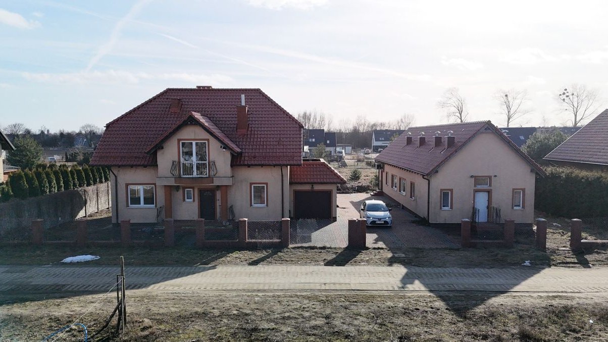 Dodatkowy budynek usługowy daje możliwość wykorzystania nieruchomości nie tylko jako domu jednorodzinnego — np. pod działalność, magazyn, pracownię, lub adaptację mieszkalną.