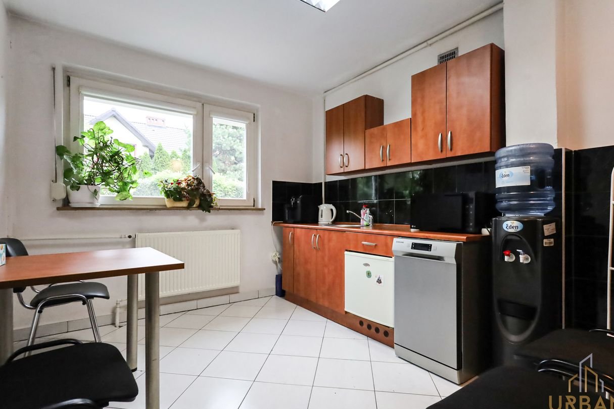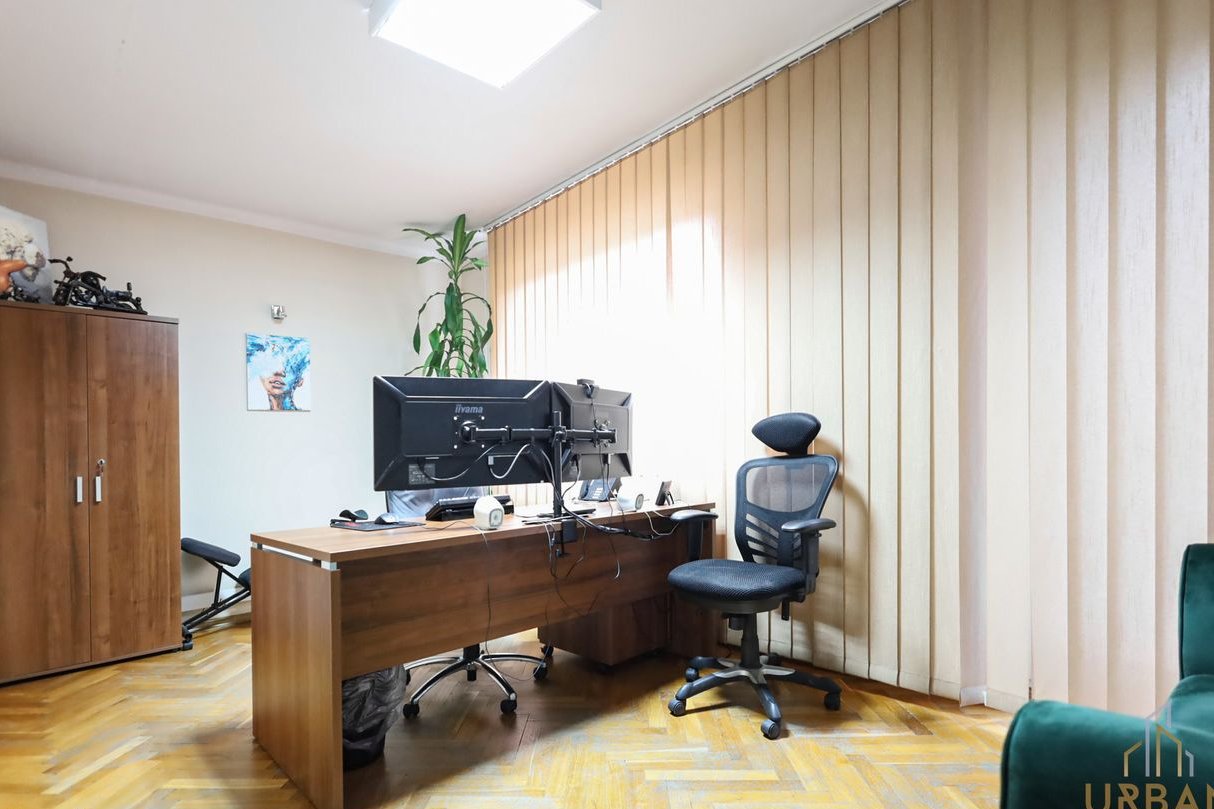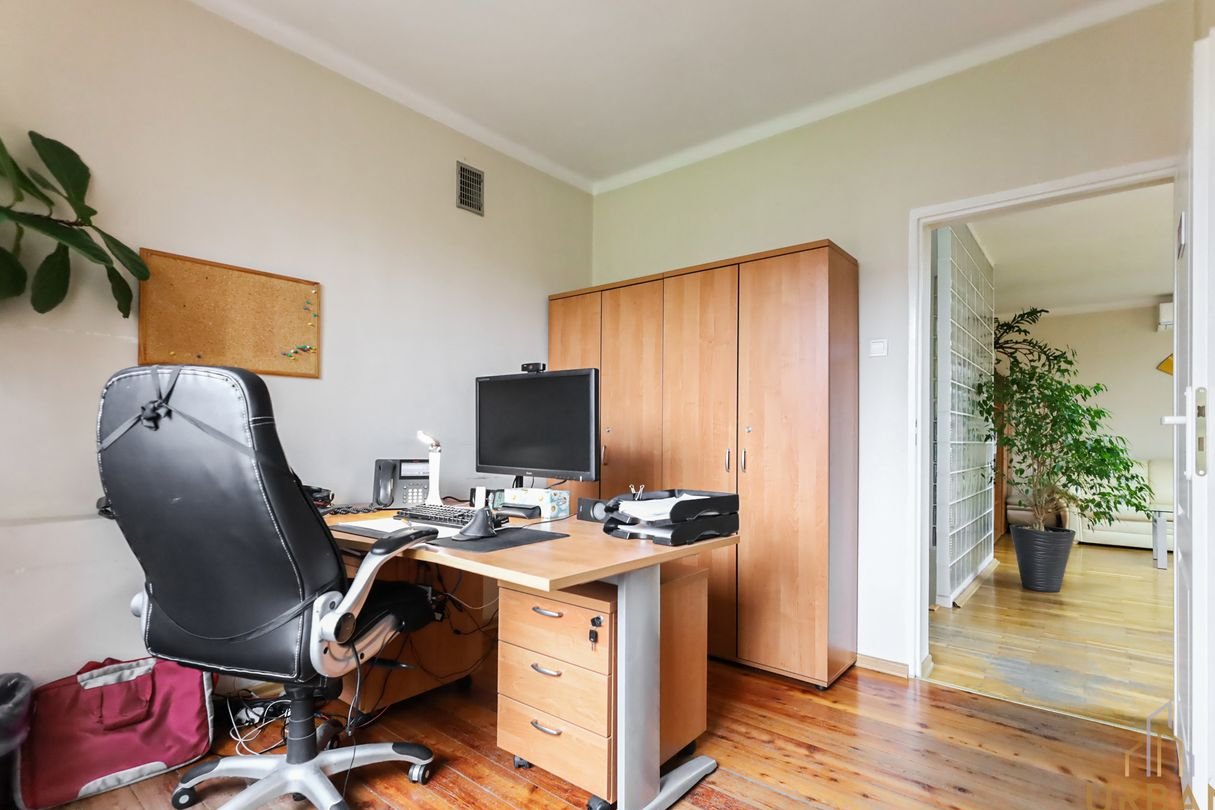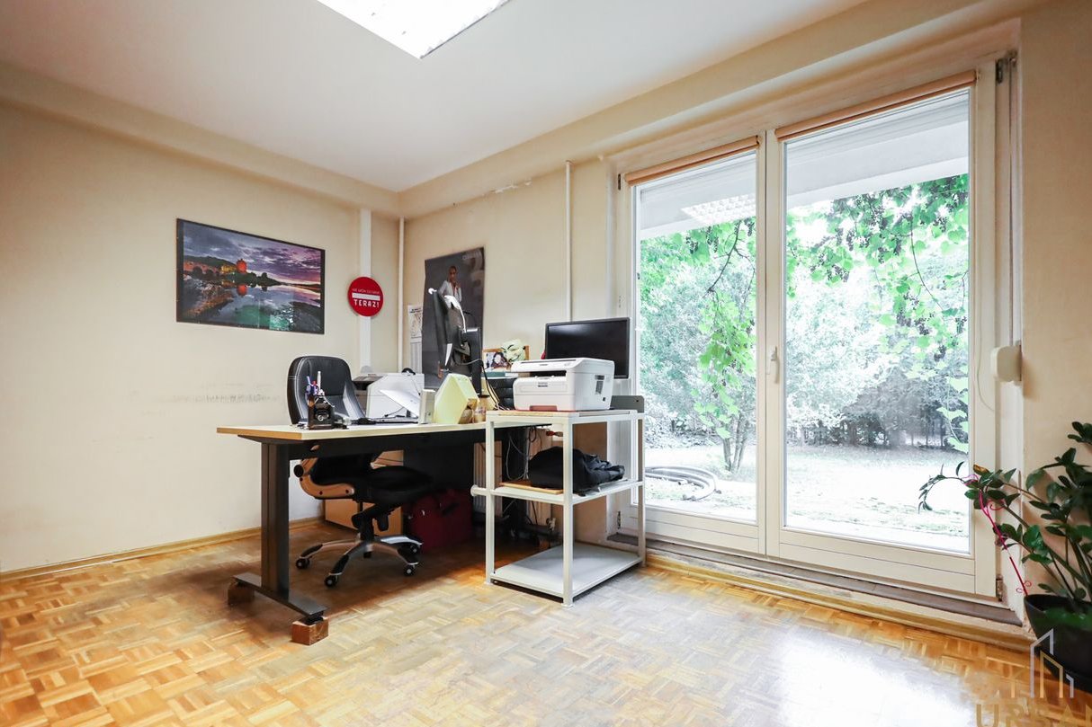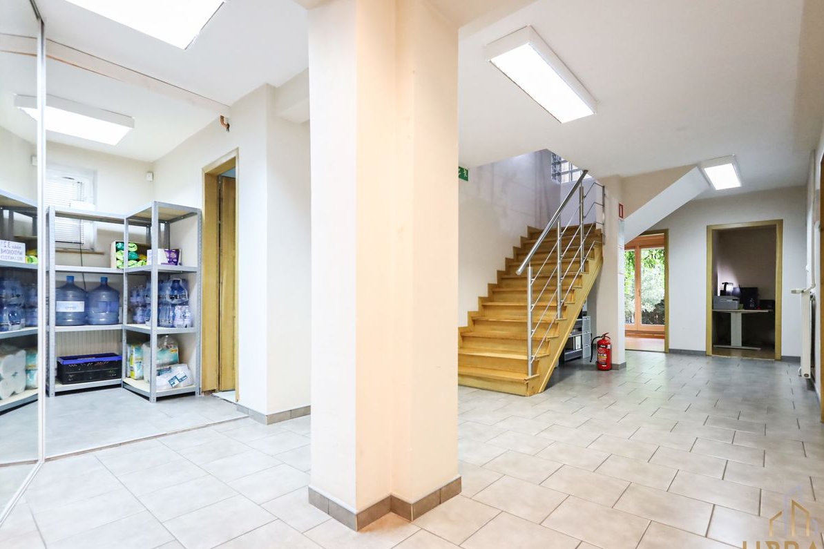 Dom zlokalizowany jest w spokojnej, willowej okolicy w bezpośrednim sąsiedztwie punktów usługowo-handlowych. Wybudowany w latach 80 i w międzyczasie częściowo odnowiony. Obecnie dostosowany pod biuro – idealny pod inwestycję lub po małych zmianach - dla rodziny.