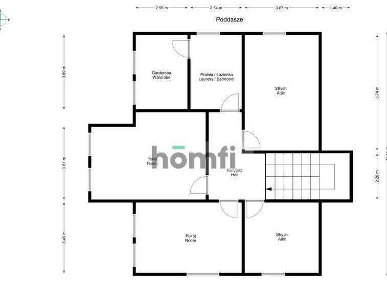 - poddasze - trzy pokoje, łazienka (pralnia), garderoba, stych