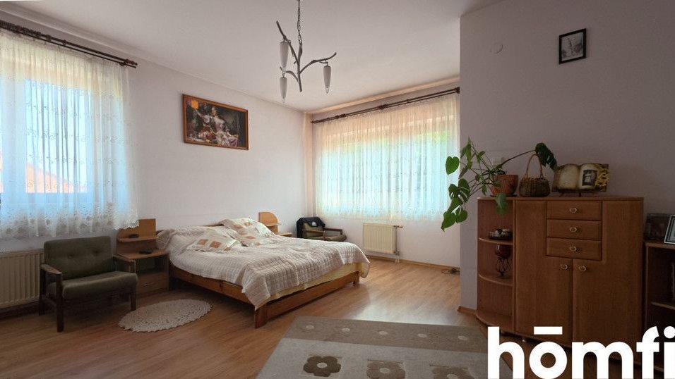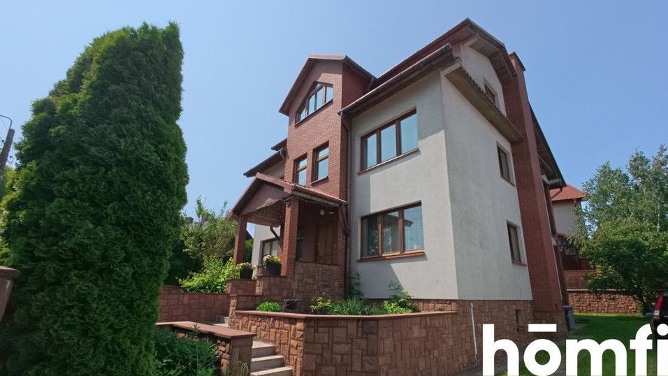 he house is over 300m2 of space distributed over three utility floors. These are 9 rooms, which include 7 separate bedrooms, a living room and a dining room. In addition, the building has 3 bathrooms, a large, separate kitchen and several utility rooms (attic, wardrobe, laundry room). The house has a basement, although technically it is the ground floor. These are several utility rooms with a boiler room and a garage.