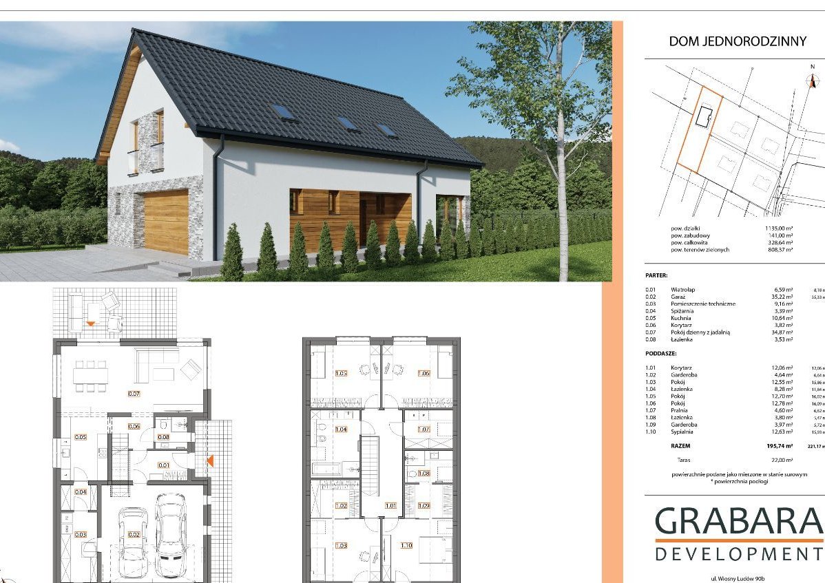 - Powierzchnia użytkowa 195,74 m2,