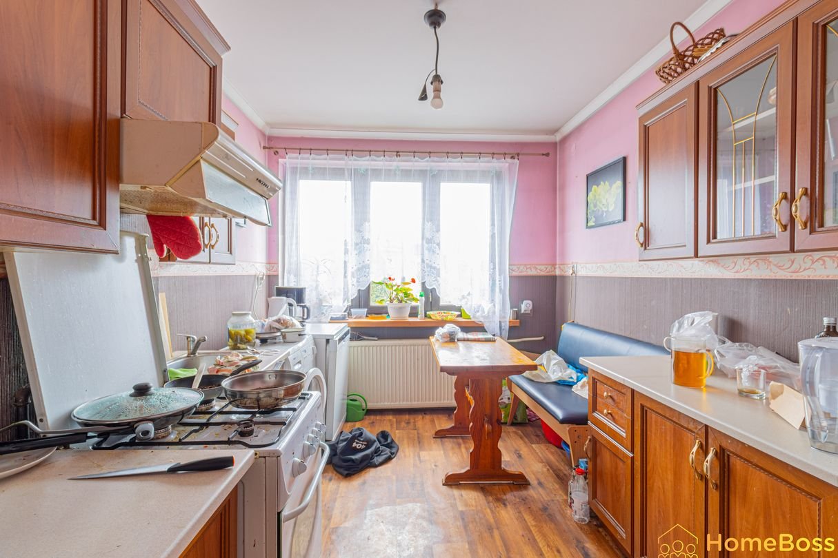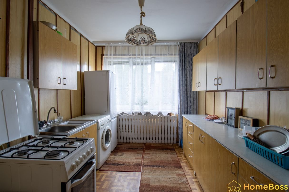 Układ domu jest funkcjonalny: budynek z lat 70. składa się z pełnego podpiwniczenia, parteru, piętra oraz strychu. Na kondygnacjach mieszkalnych znajdują się pokoje, kuchnie, łazienki i komunikacja. Pozwala to wygodnie zorganizować strefę dzienną i nocną dla rodziny lub dwóch gospodarstw domowych. Do bryły domu dobudowano murowany garaż o pow. ok. 37,5 m², a na działce znajduje się również budynek gospodarczy o pow. ok. 23,6 m². Dom jest w standardzie typowym dla swojej epoki i wymaga remontu, co daje możliwość stworzenia wnętrz dokładnie pod własne potrzeby.