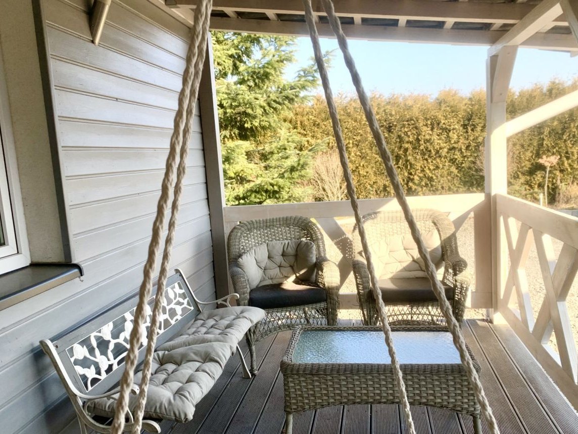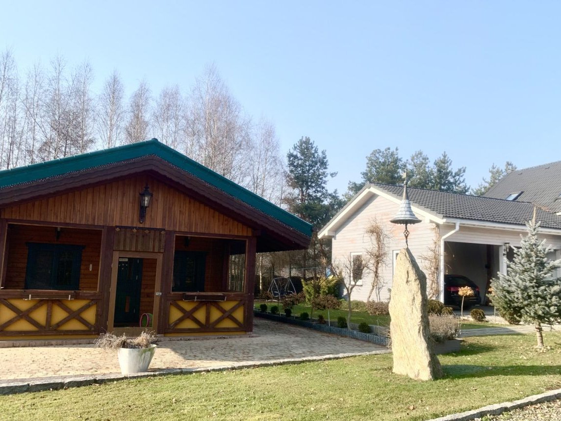 Dodatkowo na działce mniejszy całoroczny drewniany dom o powierzchni 60 m2 z tarasem, który może pełnić rolę domku gościnnego.