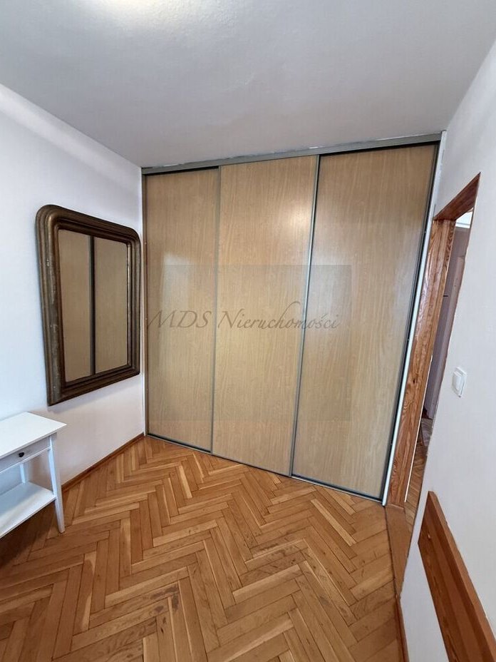 mniejszy pokój z dużą szafą wnękową.