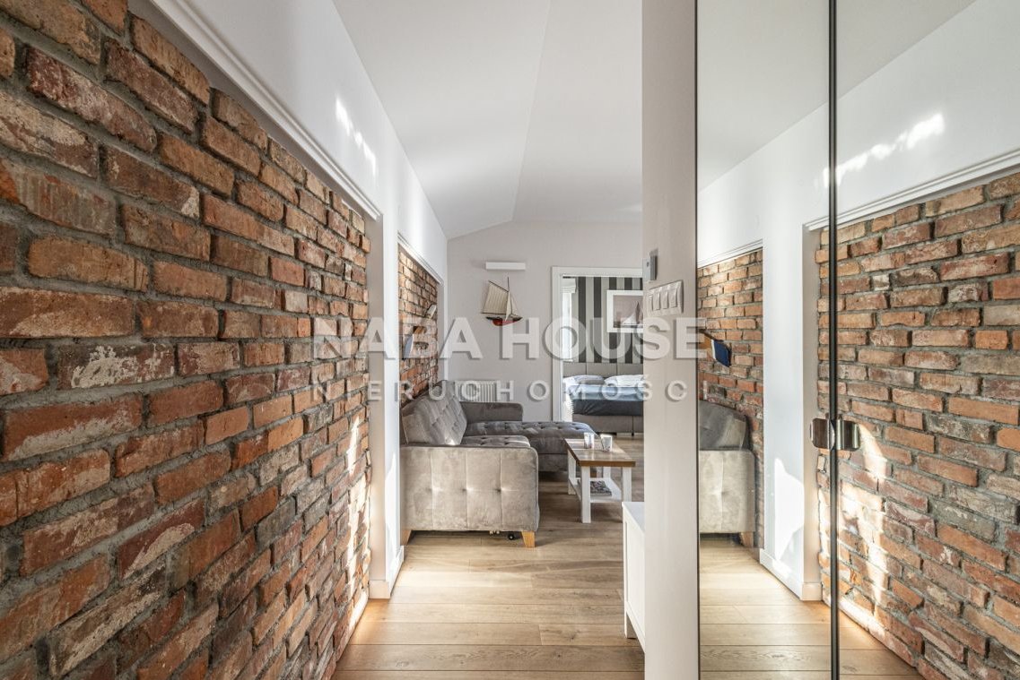 Okna mieszkania wychodzą na stronę południową, tak więc wnętrze pełne naturalnego światła. Część ścian udekorowana cegłą, której podświetlenie daje ciekawy efekt wieczorową porą.