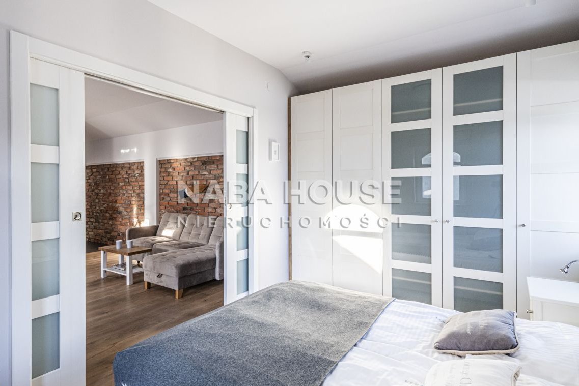 Sypialnia oddzielona jest od salonu rozsuwanymi drzwiami, także po otwarciu powstaje duża przestrzeń połączona z pokojem dziennym. Ten pokój mieści duże, dwuosobowe łóżko i pojemną szafę ubraniową.