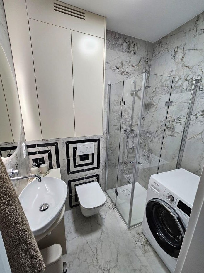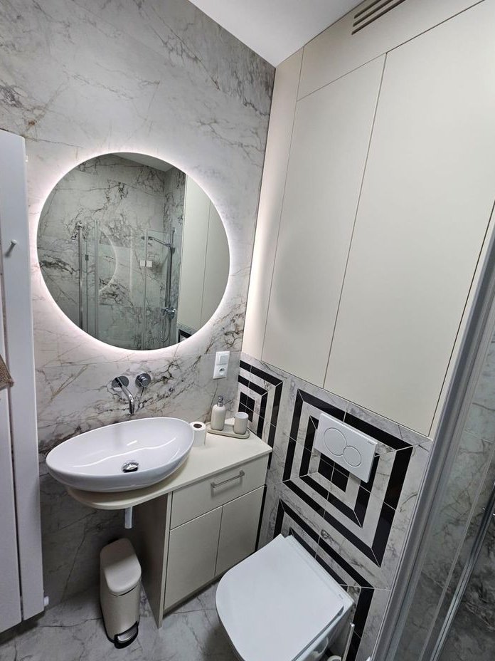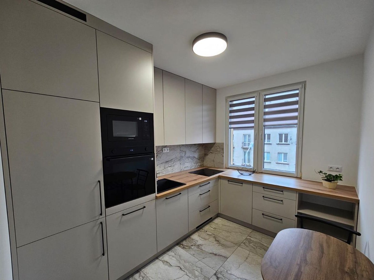 Mieszkanie po generalnym remoncie podczas którego wymieniono instalację elektryczną i wodno-kanalizacyjną. Podłoga została pokryta dobrej jakości wodoodpornymi panelami o wysokiej klasie ścieralności. W kuchni i łazience użyto ponadczasowych, markowych płytek Tubądzin. Meble w obu pomieszczeniach zostały wykonane na wymiar z dbałością o detale. Kuchnia została wyposażona w nowoczesny, wysokiej jakości sprzęt AGD firmy Samsung (piekarnik, mikrofalówka, lodówka, zmywarka, płyta indukcyjna). Ponadto w mieszkaniu zostały wymienione wszystkie drzwi wraz z futrynami renomowanej marki Erkado. Dbając o komfort i łatwość użytkowania na oknach zostały zamontowane rolety z funkcją dzień-noc.