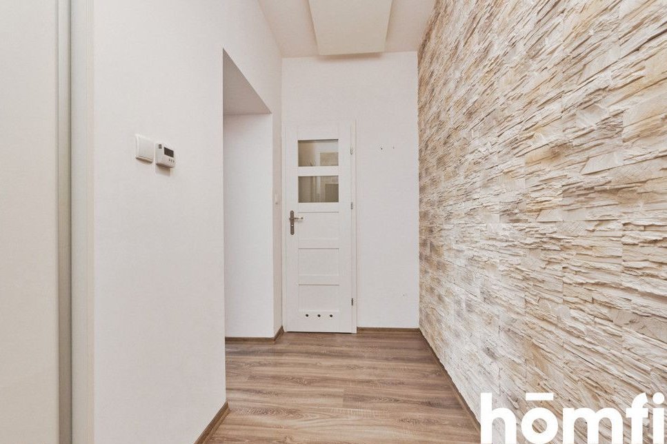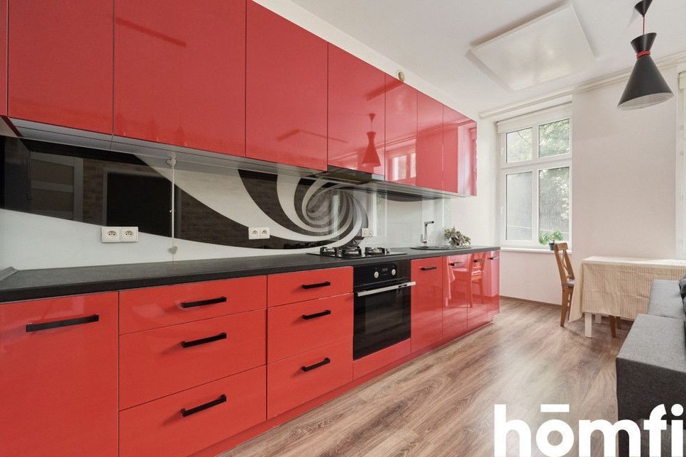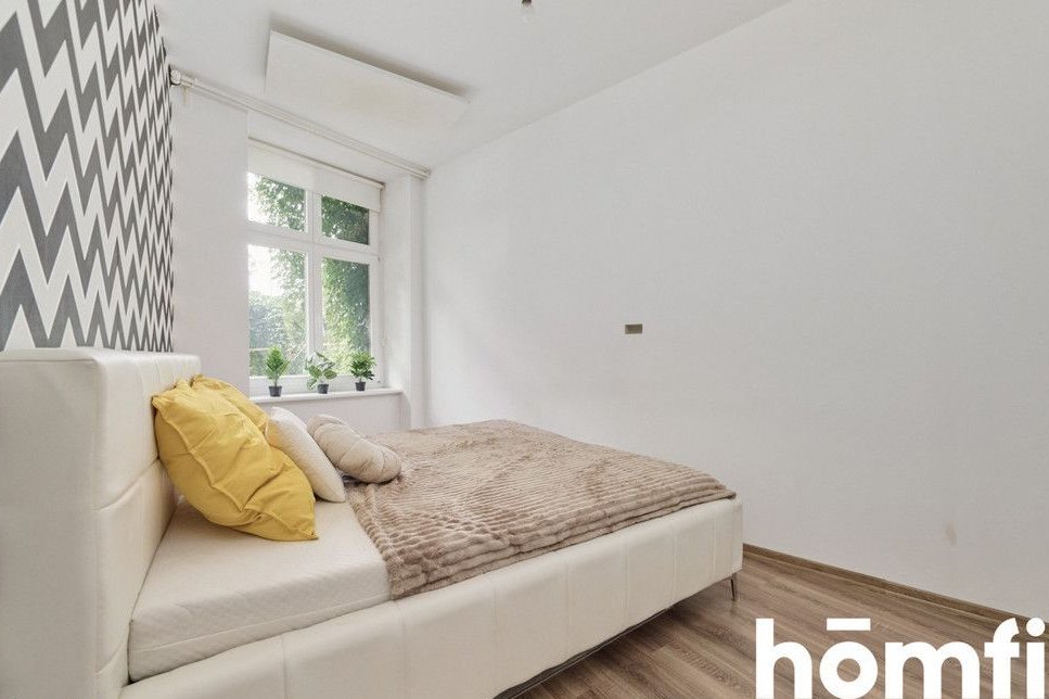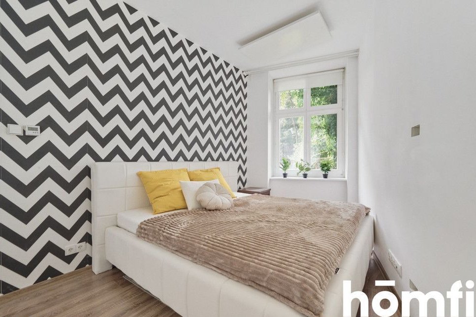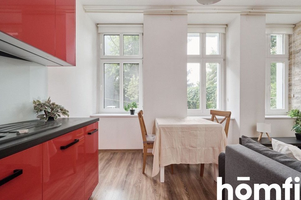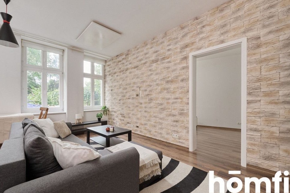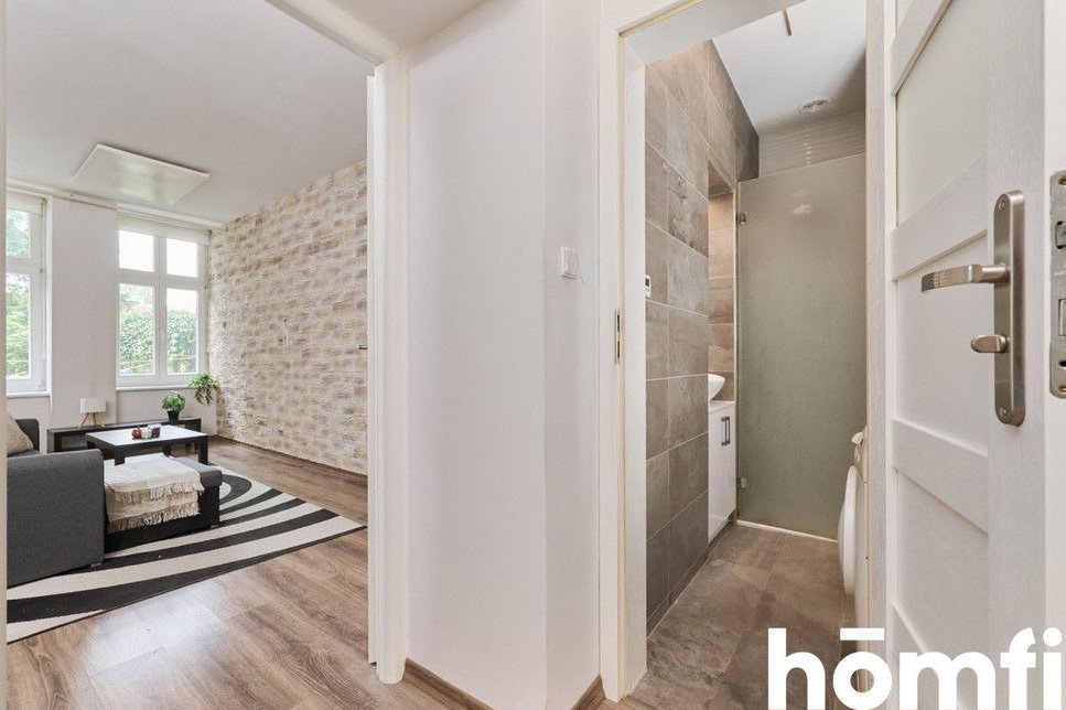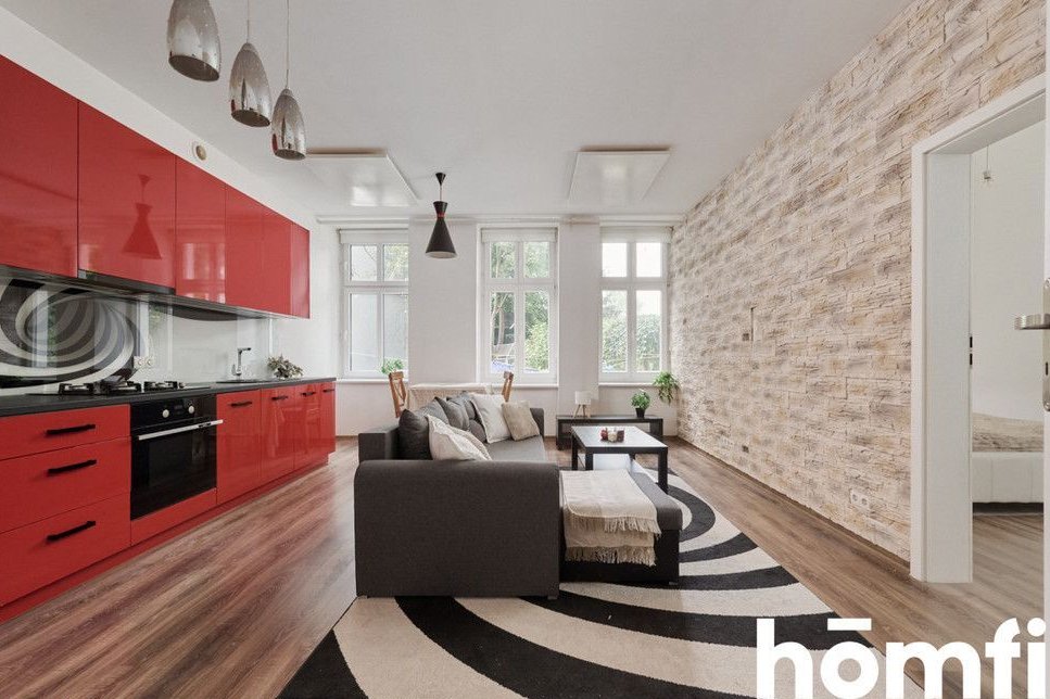 PROPERTY: For sale: a two-room 45.16 m² apartment, located on the elevated ground floor of a renovated tenement building. A spacious 5 m² basement belongs to the apartment – ideal for storing bicycles. The apartment is fully furnished, modernly designed, and ready to move in without any additional investment. High ceilings and stylish brick walls create a unique atmosphere. Large windows are an additional advantage. The apartment is heated with infrared panels. This offer is ideal for singles, couples, and investors looking for a rental apartment.