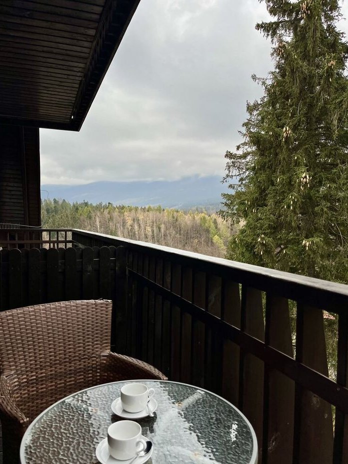 Z poziomu tarasu widok wart milion dolarów – niezakłócona panorama Karkonoszy z widokiem na Szrenicę. Genialne miejsce do wypoczynku