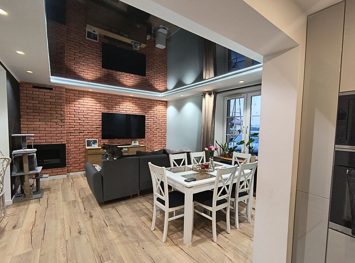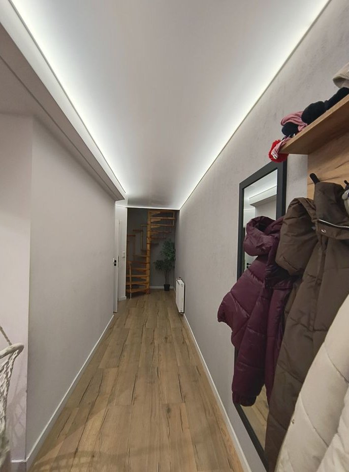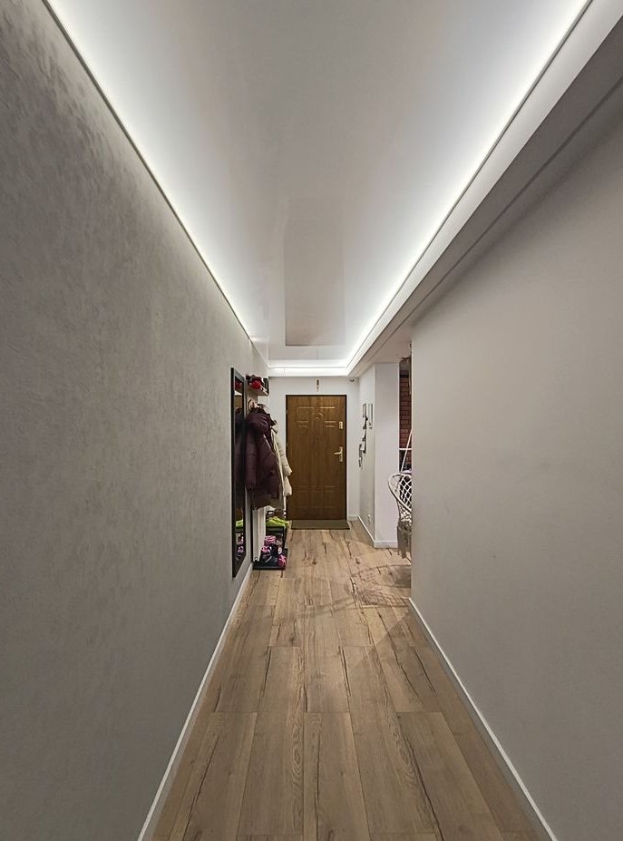 piękny napinany sufit w salonie i dolnym korytarzu