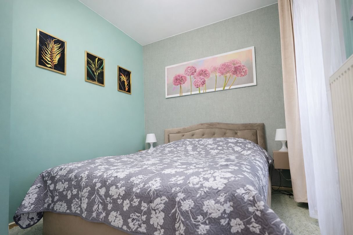 Mieszkanie zostało wyposażone w klimatyzację (w jednej z sypialni), monitoring oraz zewnętrzne rolety automatyczne, co zwiększa komfort i bezpieczeństwo mieszkańców.