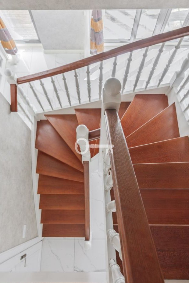 The finishing include wood (floors, stairs, kitchen cabinets) and a stone countertop in the kitchen. The layout of the rooms is practical and conducive to everyday use. This is an option for those looking for a comfortable, well-organized space.