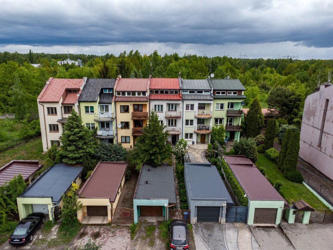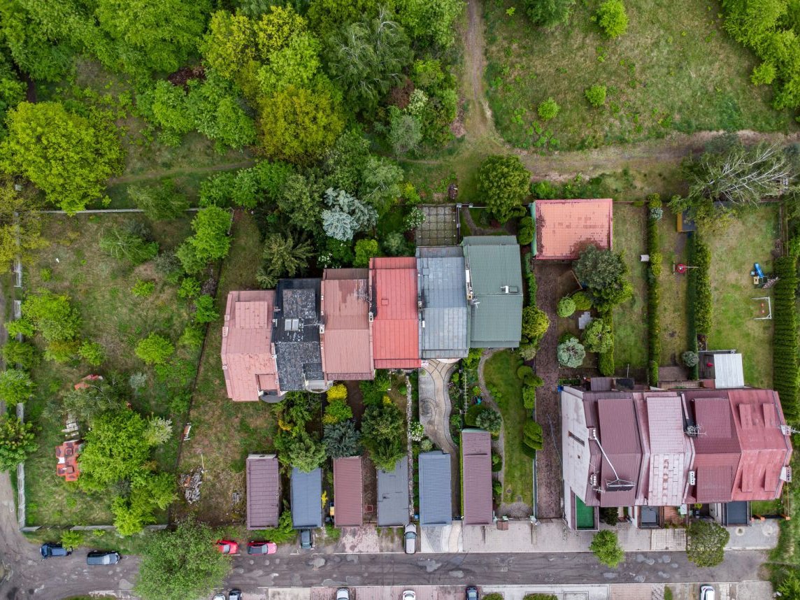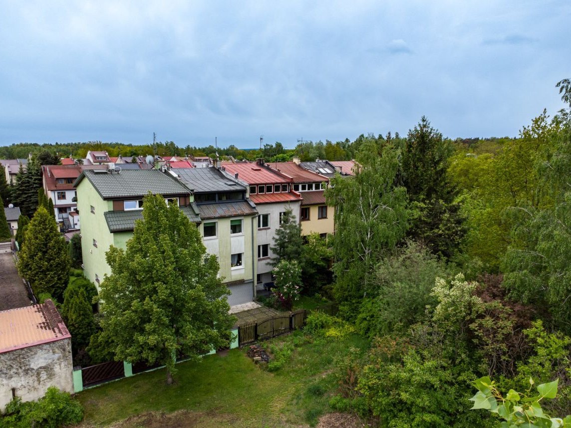 Dom znajduje się w spokojnej i zielonej dzielnicy Łodzi - na Olechowie, która wyróżnia się kameralnym charakterem i dobrą infrastrukturą. To idealne miejsce dla rodzin oraz osób ceniących ciszę i bliskość natury, a jednocześnie wygodny dostęp do miejskich udogodnień.