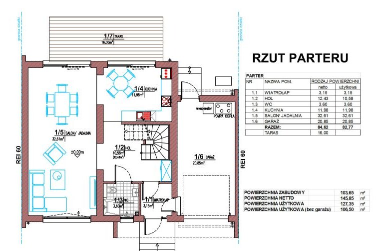 METRAŻ: Pow. całkowita: 145,85m2, użytkowa: 106,50m2