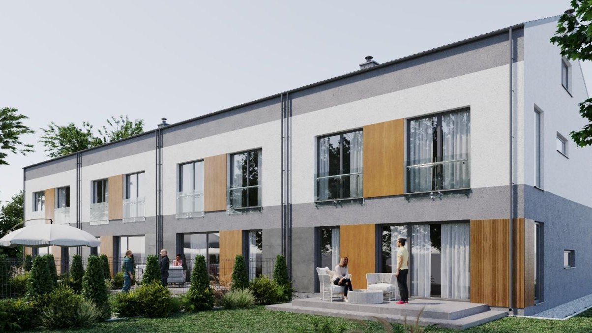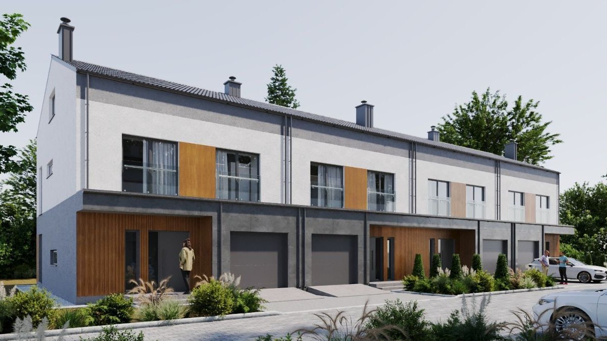 Oferujemy nowoczesne, funkcjonalne szeregowe domy o pow. 145 mkw + poddasze nieużytkowe z ogródkiem ogrodzonym. Zaprojektowane z myślą o komforcie mieszkańców. Każdy dom posiada przemyślany układ pomieszczeń, duże okna, co zapewnia doskonałe doświetlenie wnętrza, oraz nowoczesne rozwiązania technologiczne, pompy ciepła, fotowoltaika. Domy są wykończone wysokiej jakości materiałami, co gwarantuje trwałość i estetyczny wygląd.