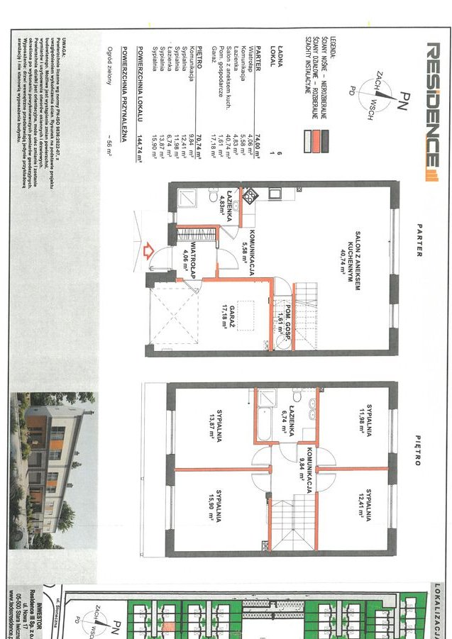 W tym: powierzchnia użytkowa 145 mkw + do wykorzystania poddasze o powierzchni 74 mkw ( w tym pow. 40 mkw do wysokości powyżej 190 cm).