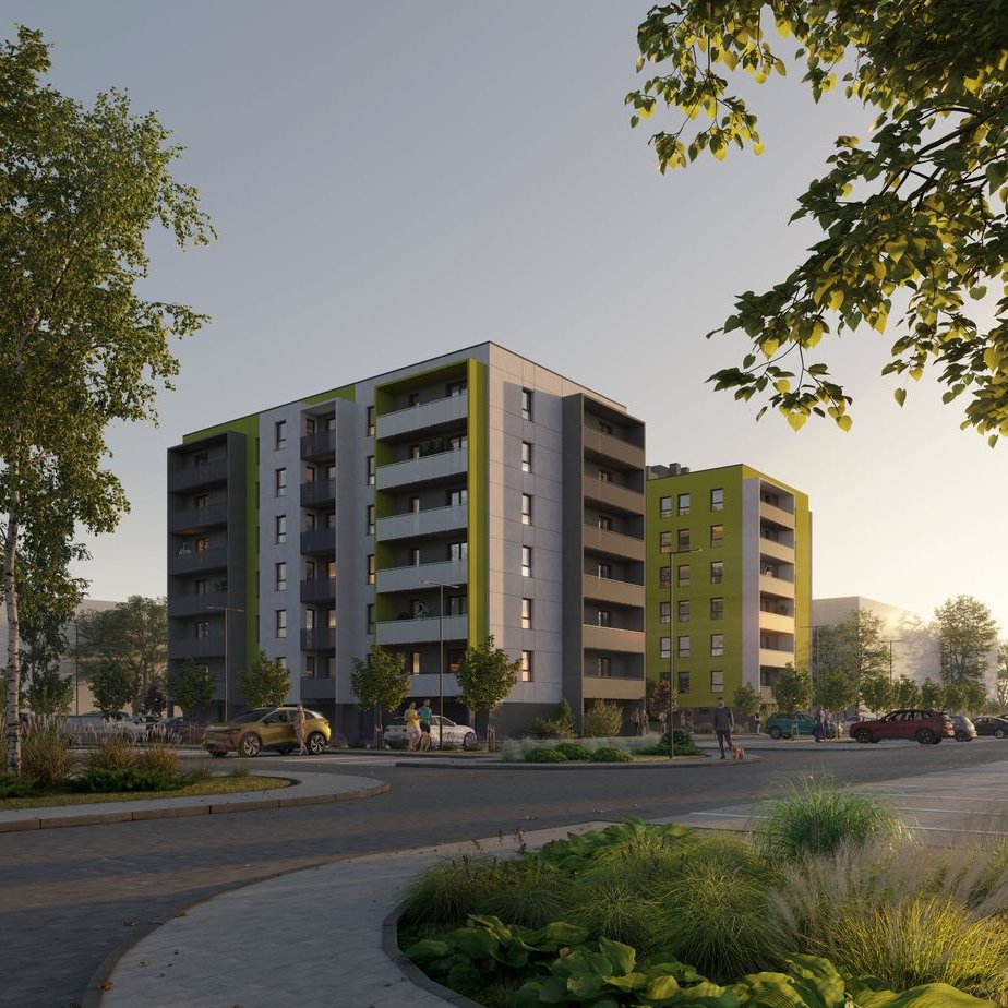 W pierwszym etapie zostaną wybudowane dwa budynki (B-3, B-4) 1-klatkowe z 2- i 3-pokojowymi mieszkaniami o pow. od 38 m2 do 56 m2 z dużymi balkonami.