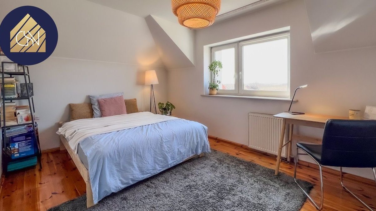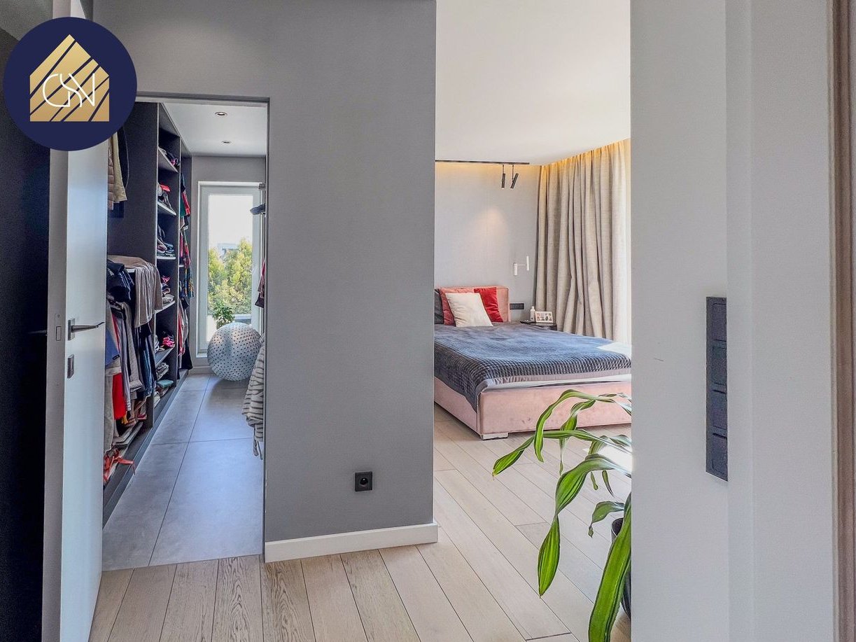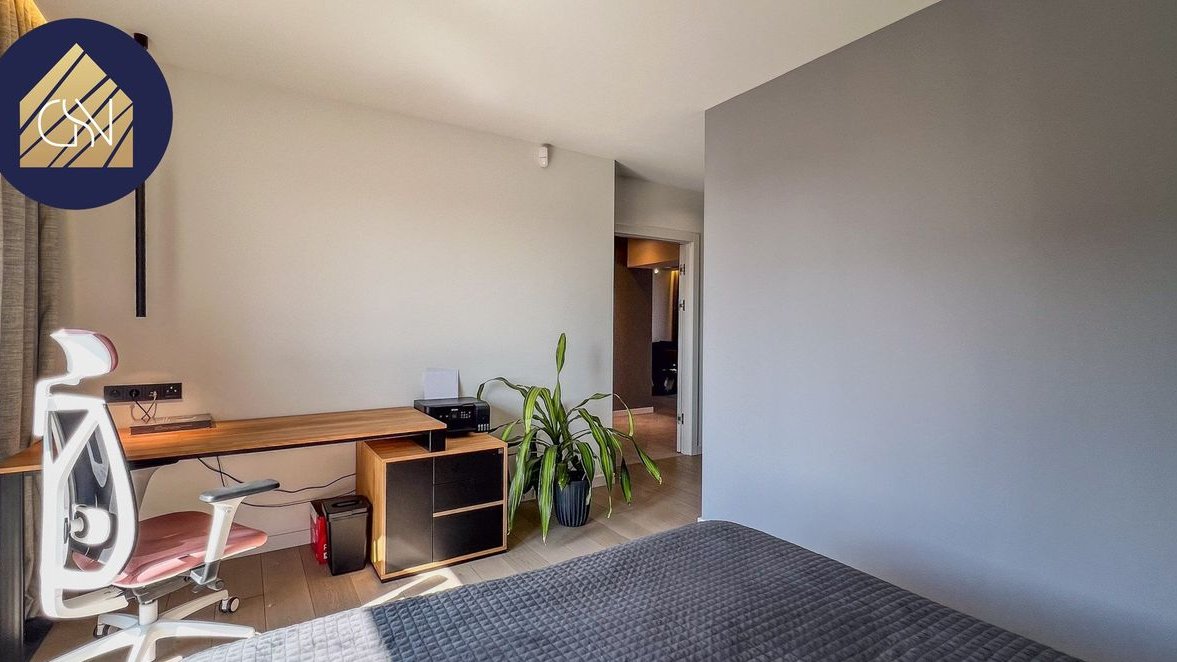 - sypialnia z garderobą w pełni wyposażona z garderobą oraz pięknym miejscem do pracy