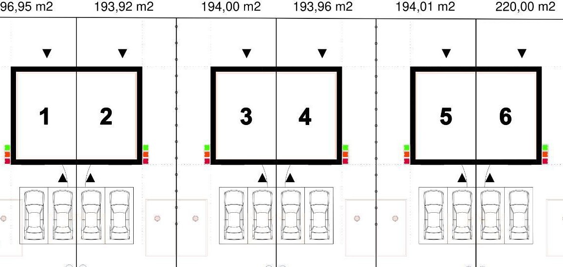 Powierzchnia działek: Indywidualne ogrody o powierzchni od 193,92 m² do 220 m².