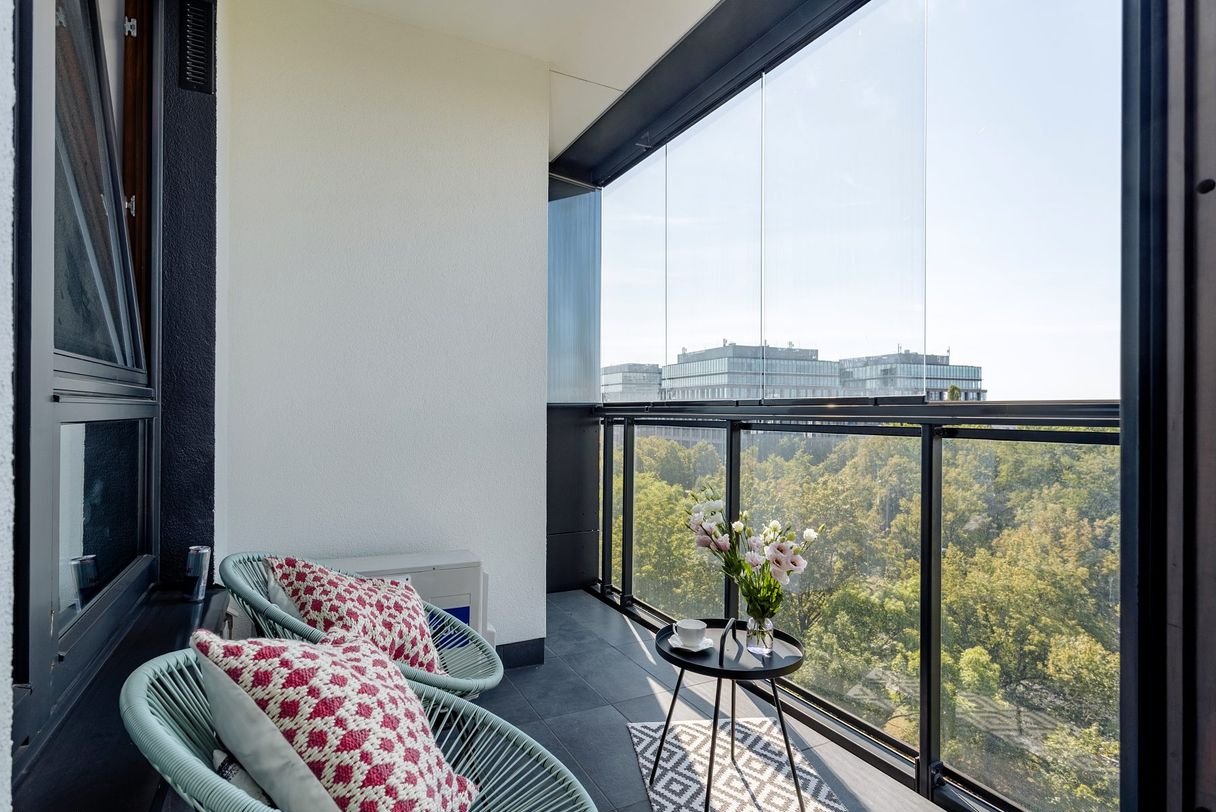 loggia (6.3 m²) – overlooking greenery and Warsaw, ideal for morning coffee or evening wine