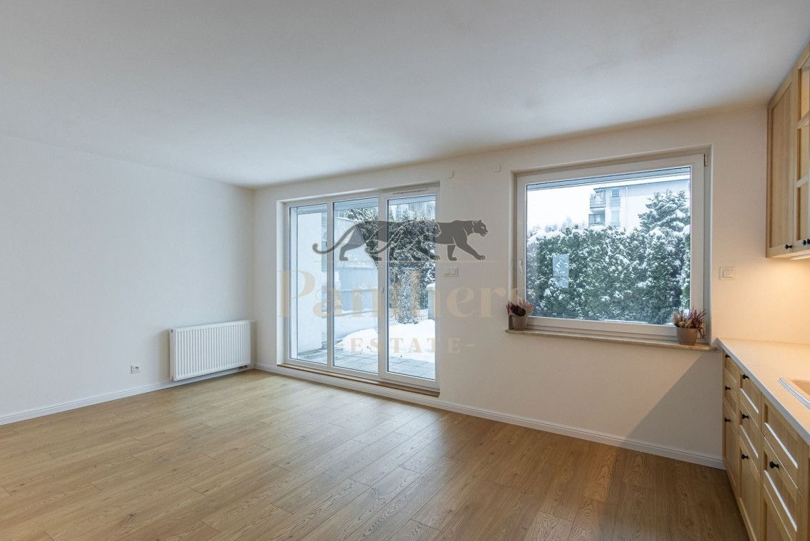 Salon z aneksem kuchennym: Otwarta, doświetlona przestrzeń z wyjściem do ogródka.