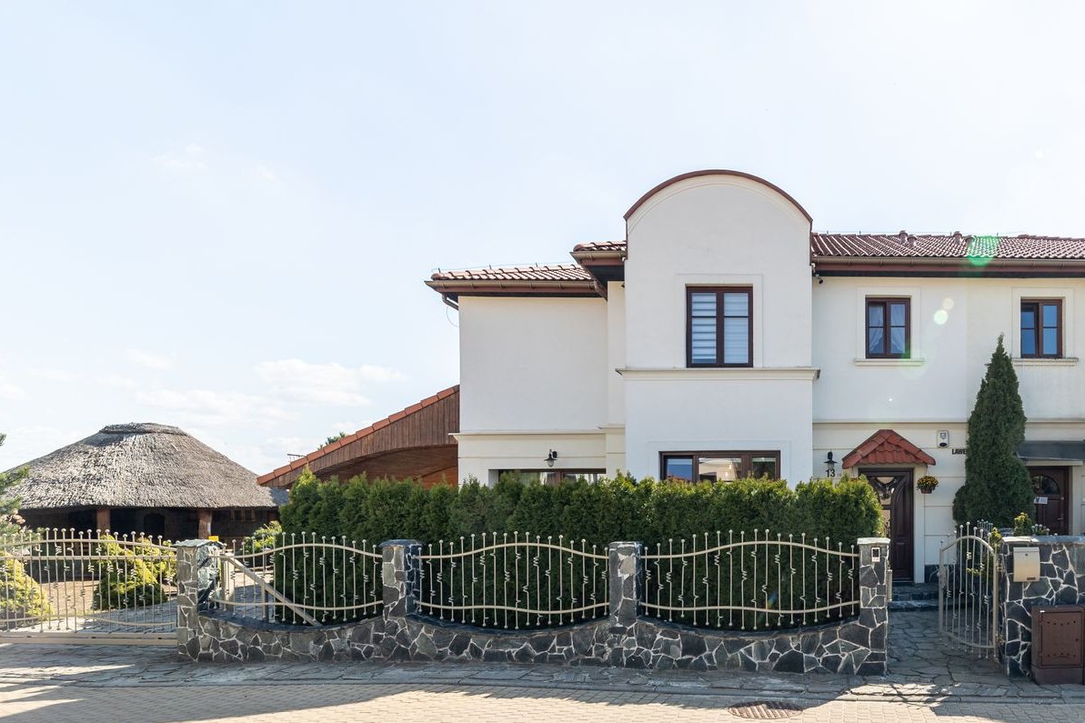 Działka jest otoczona solidnym, murowanym i kutym ogrodzeniem. Zarówno dom, jak i okolica zapewniają wysoki komfort i poczucie bezpieczeństwa.