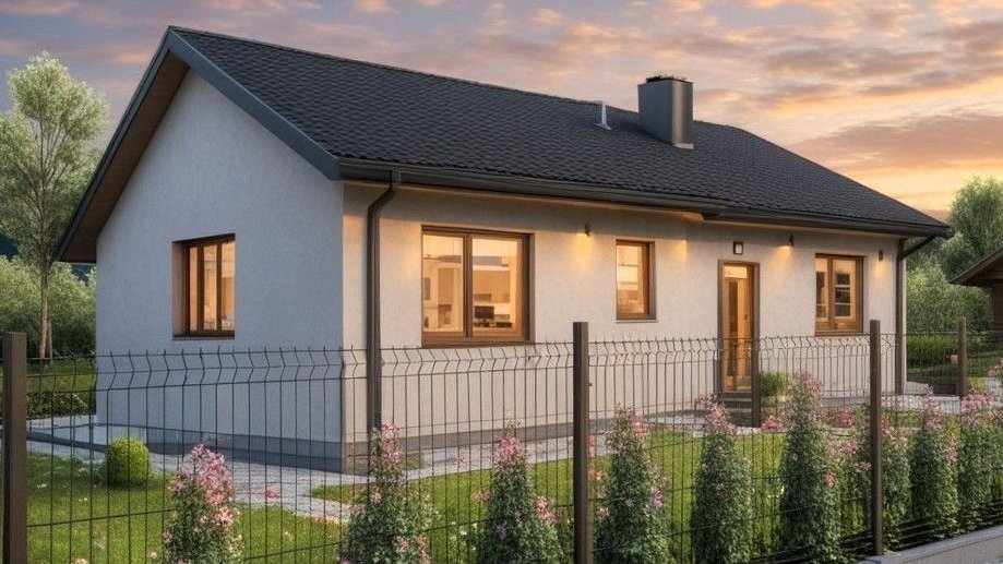 Dom wybudowany wg projektu EKO2 jest ekonomicznym, a zarazem funkcjonalnym domem jednorodzinnym z trzema sypialniami, salonem z aneksem kuchennym oraz łazienką.