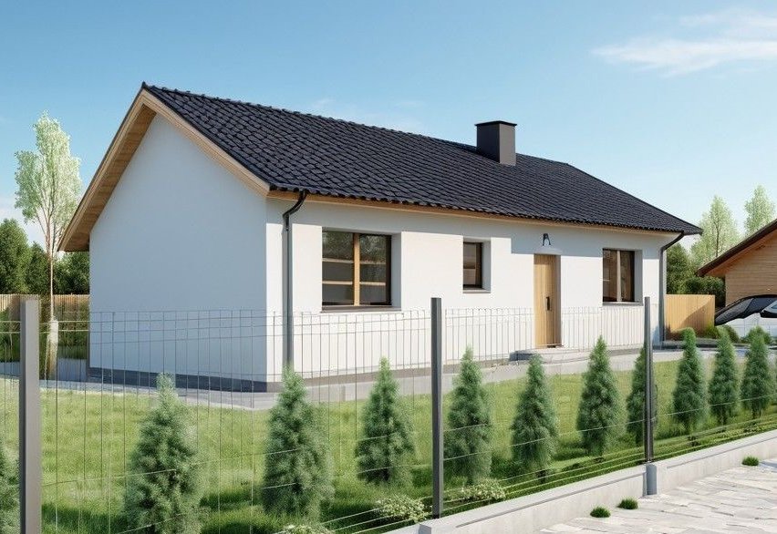 Podana cena dotyczy domu w stanie deweloperskim z kostką i ogrodzeniem panelowym.
