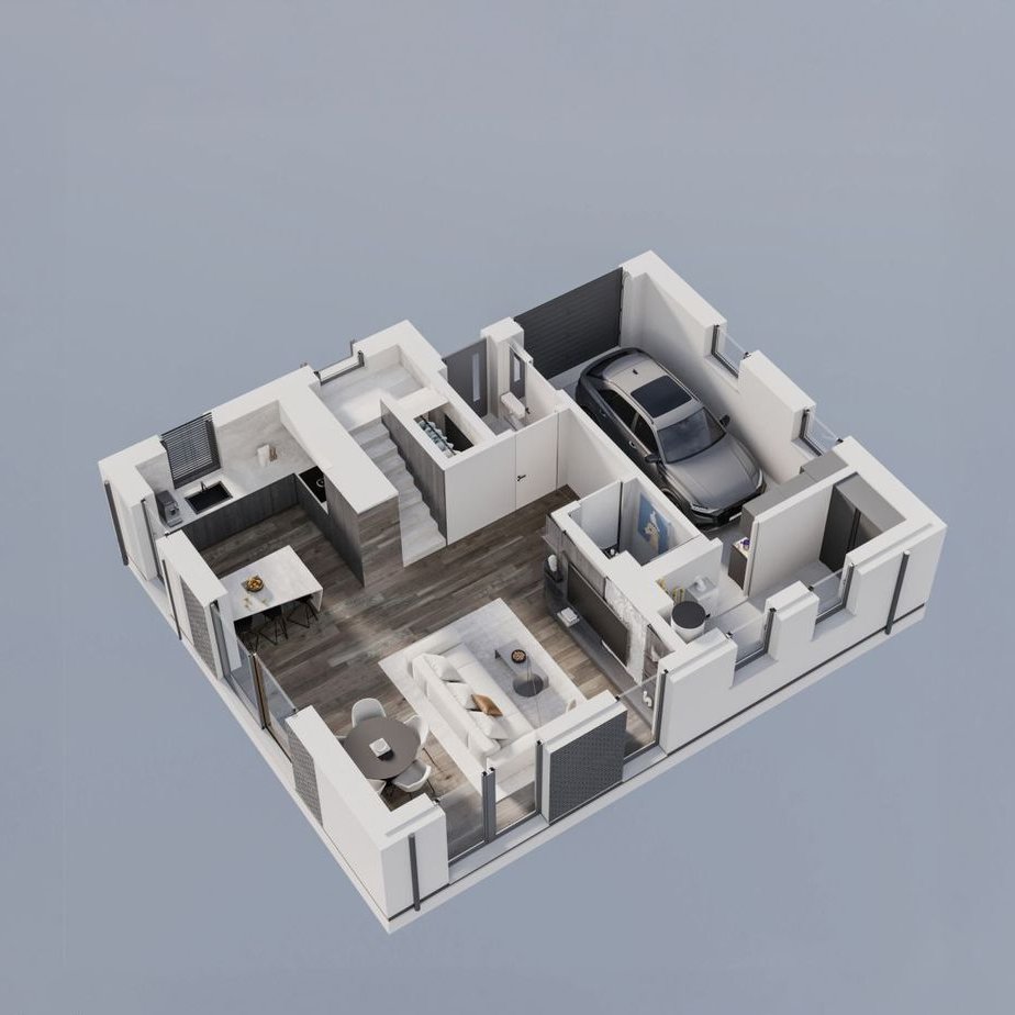 * 100% underfloor heating: Distributed throughout the entire house - covering the living area, as well as the garage and technical rooms.