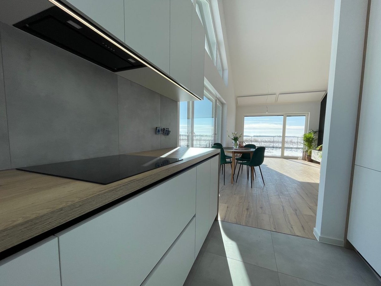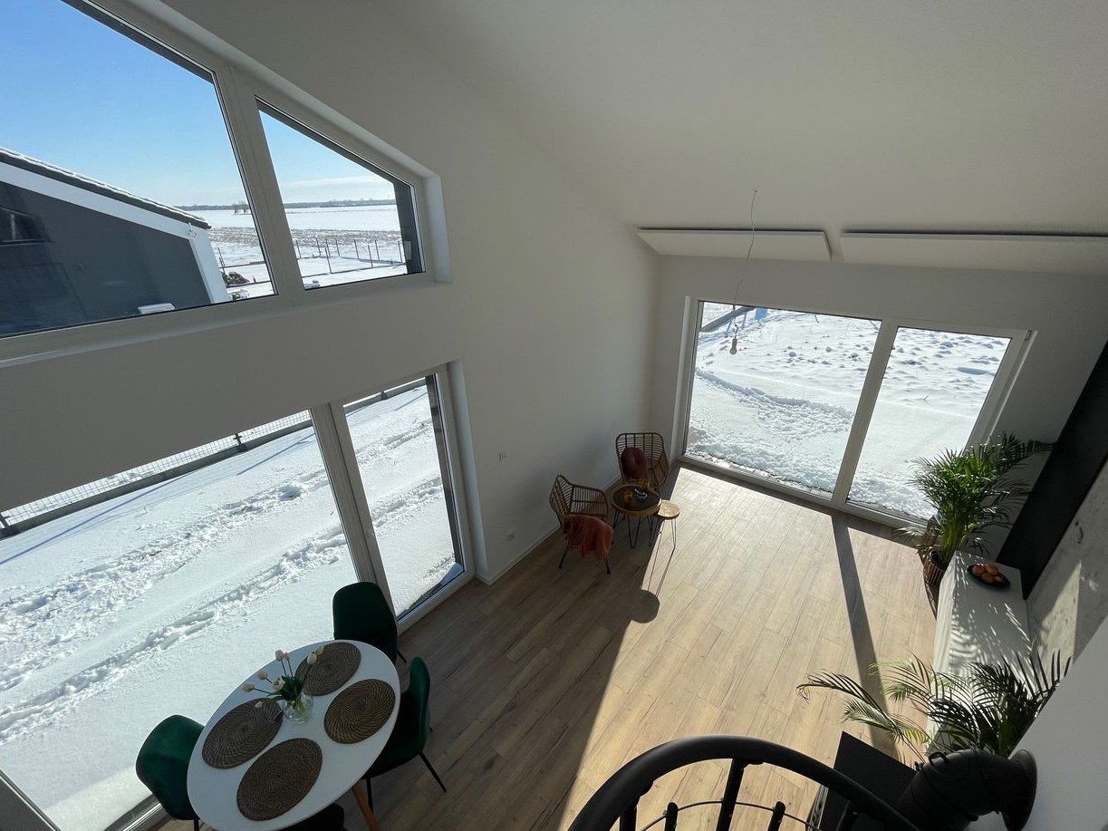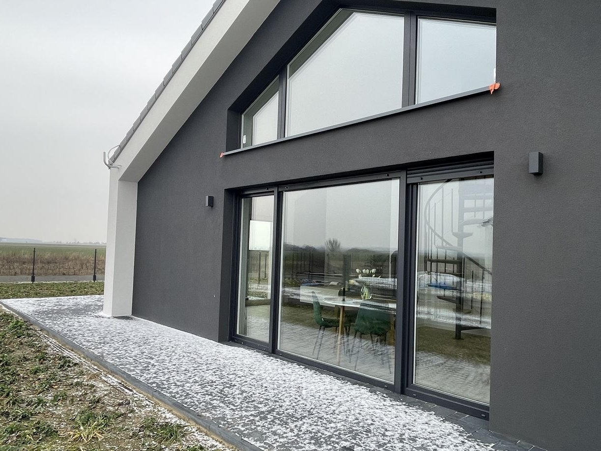 Każdy detal i funkcjonalność tej inwestycji zostały w pełni przemyślane i zaprojektowane dla spełnienia najwyższego standardu i Państwa oczekiwań. Jednym z najważniejszych elementów tego projektu są ogromne wielkoformatowe okna sięgające od podłogi do sufitu zapewniając obfitość naturalnego światła. Okna te otwierają przestrzeń na piękny, zielony ogród zapewniając niesamowite widoki. Nasze domy są gotowe na nadchodzące zmiany w zakresie energii odnawialnej i efektywności energetycznej.