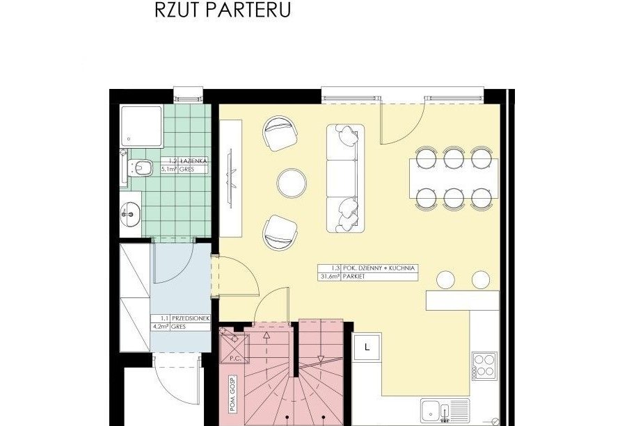 Parter - Ogrzewana płyta fundamentowa, która stanowi jednocześnie posadzkę parteru;