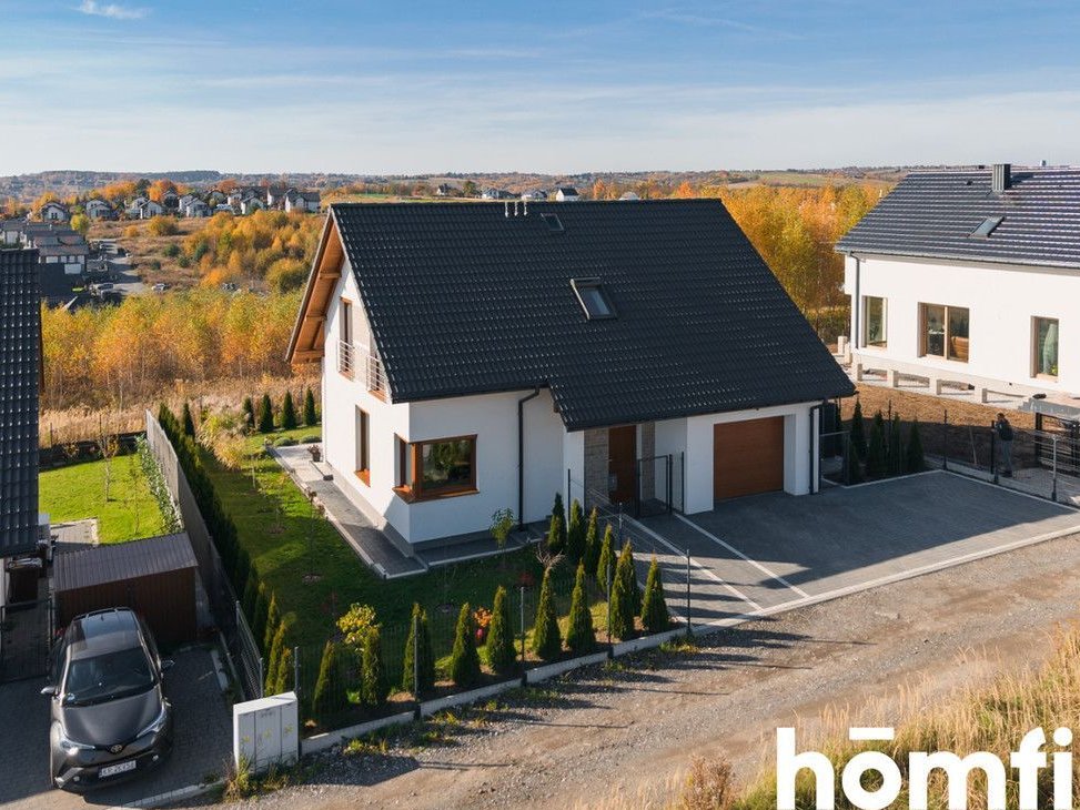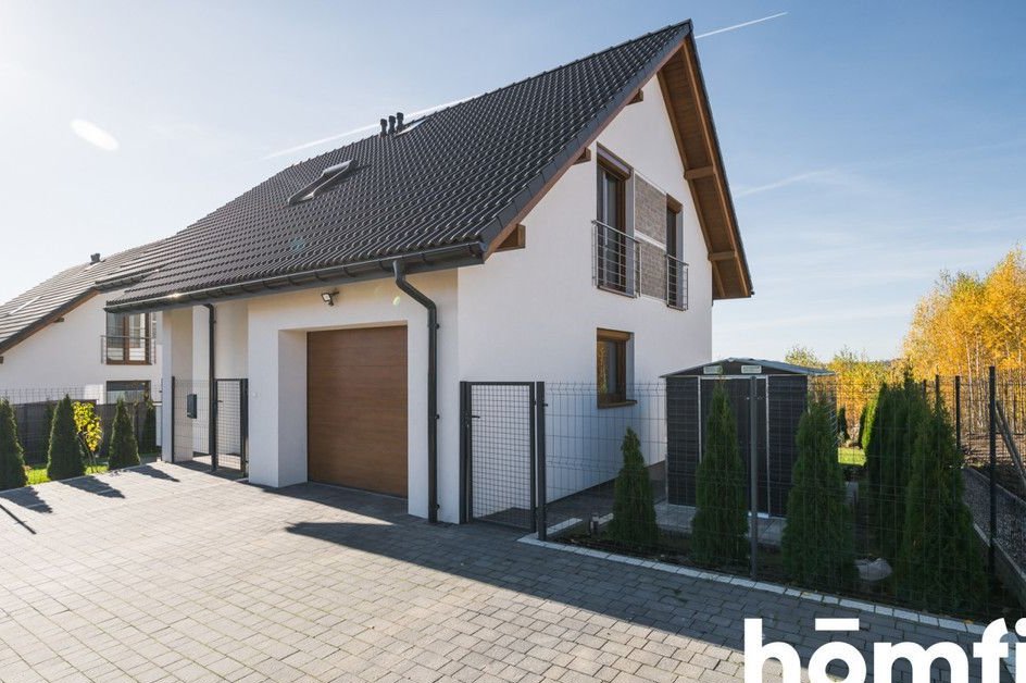 Modern, energy-efficient single-family house with an area of 142 m², finished at the end of 2022. It was designed to make everyday family life simply convenient – a functional layout, a garden with a terrace, and a garage integrated into the building with additional parking spaces. A heat pump provides underfloor heating throughout the house. Anti-burglary roller shutters enhance security, and fiber optics make remote work, running a business, or online learning hassle-free. Alarm and photovoltaic installations have also been prepared – no need to break walls.