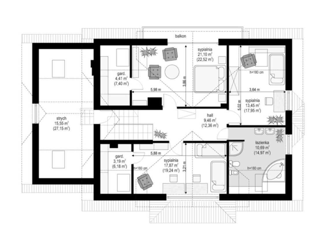 - Ogrzewanie podłogowe na parterze i piętrze (z wyłączeniem pokoi, garderoby i pralni)