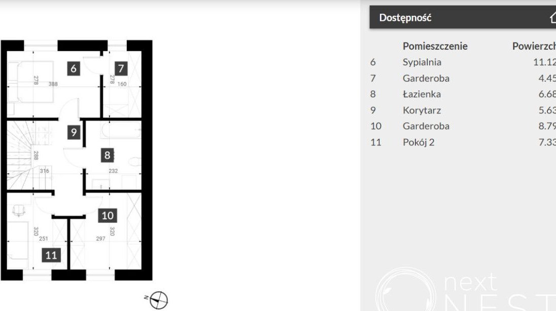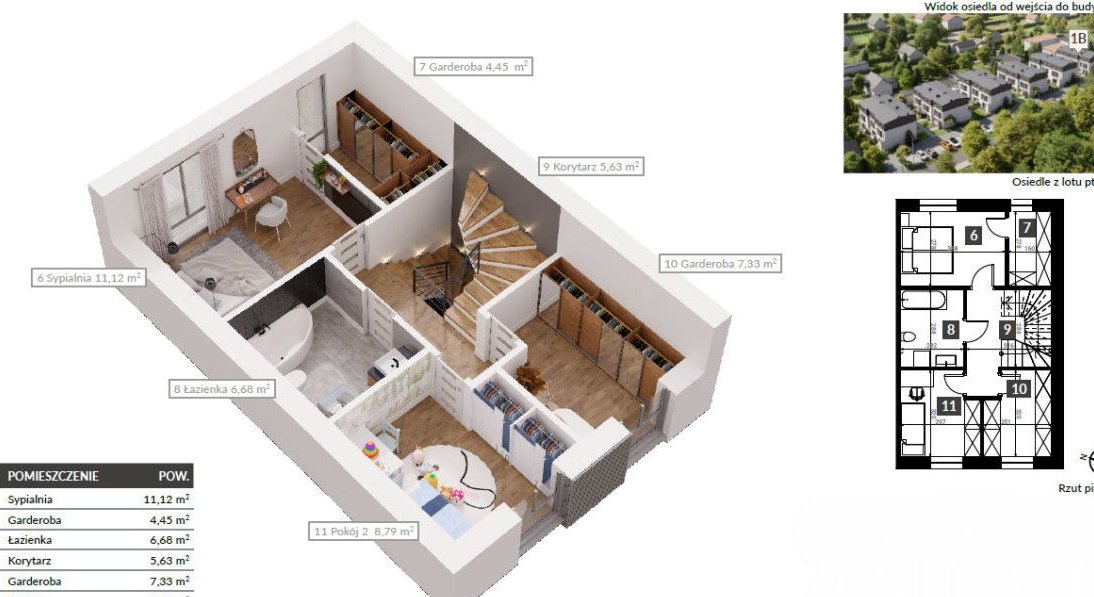 - Piętro: 3 ustawne pokoje, druga łazienka, korytarz
