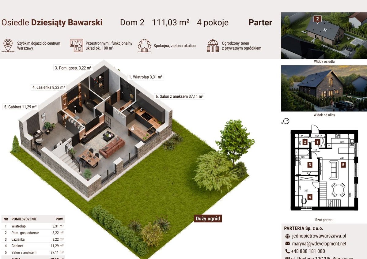 To idealne miejsce dla osób, które chcą mieszkać blisko natury, a jednocześnie szybko dojeżdżać do Warszawy, Piaseczna i Konstancina-Jeziorny.