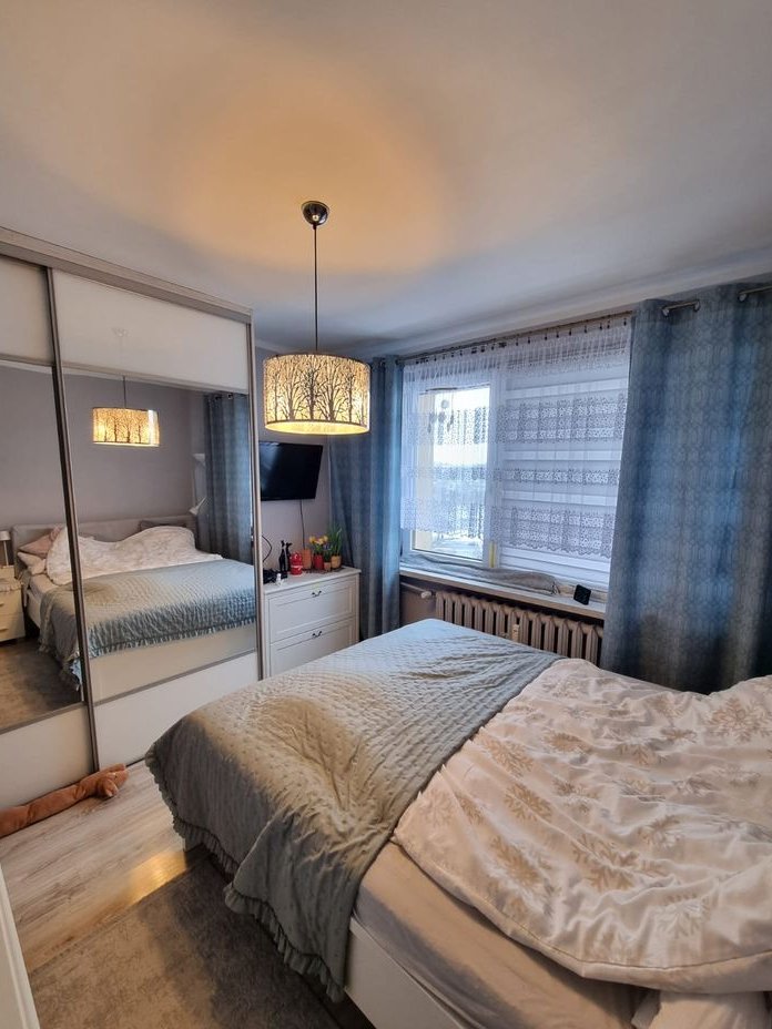 Mieszkanie posiada bardzo funkcjonalny układ pomieszczeń : duży salon , duża widna kuchnia ( możliwość połączenia kuchni z salonem), podwójny przedpokój z zabudowaną szafą, sypialnia, osobno łazienka i w-c.