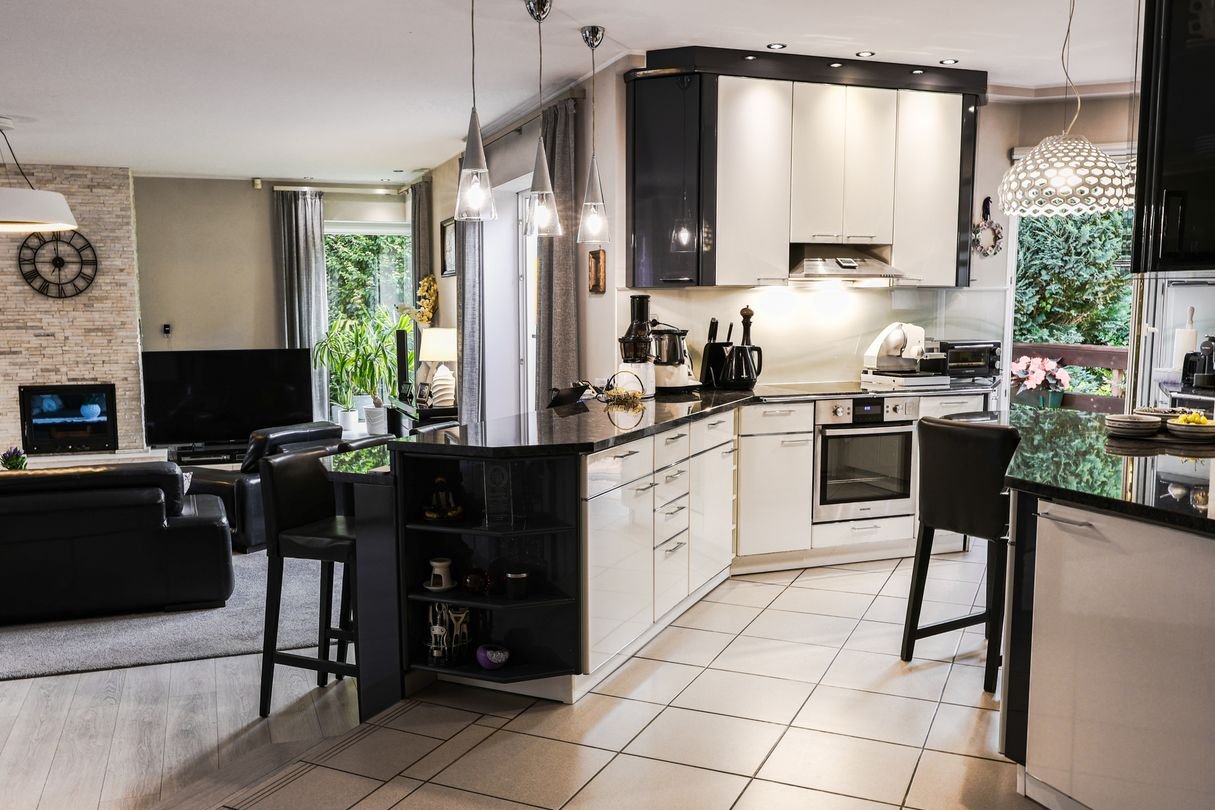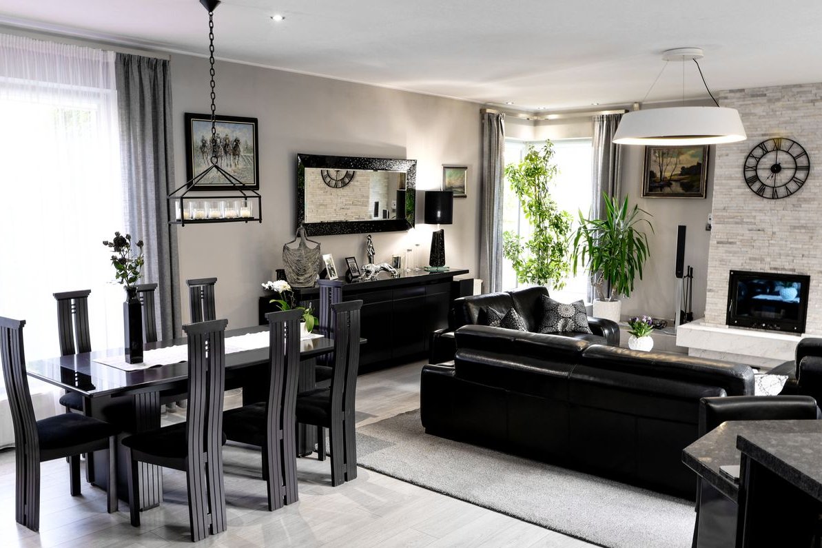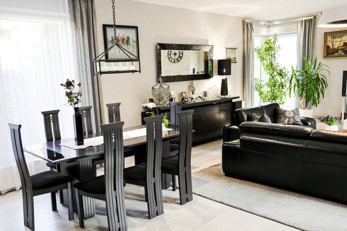 - otwarta, przestronna część dzienna o łącznej powierzchni około 68 m kw., w której skład wchodzi salon z częścią jadalnianą oraz umeblowany aneks kuchenny ze spiżarnią,