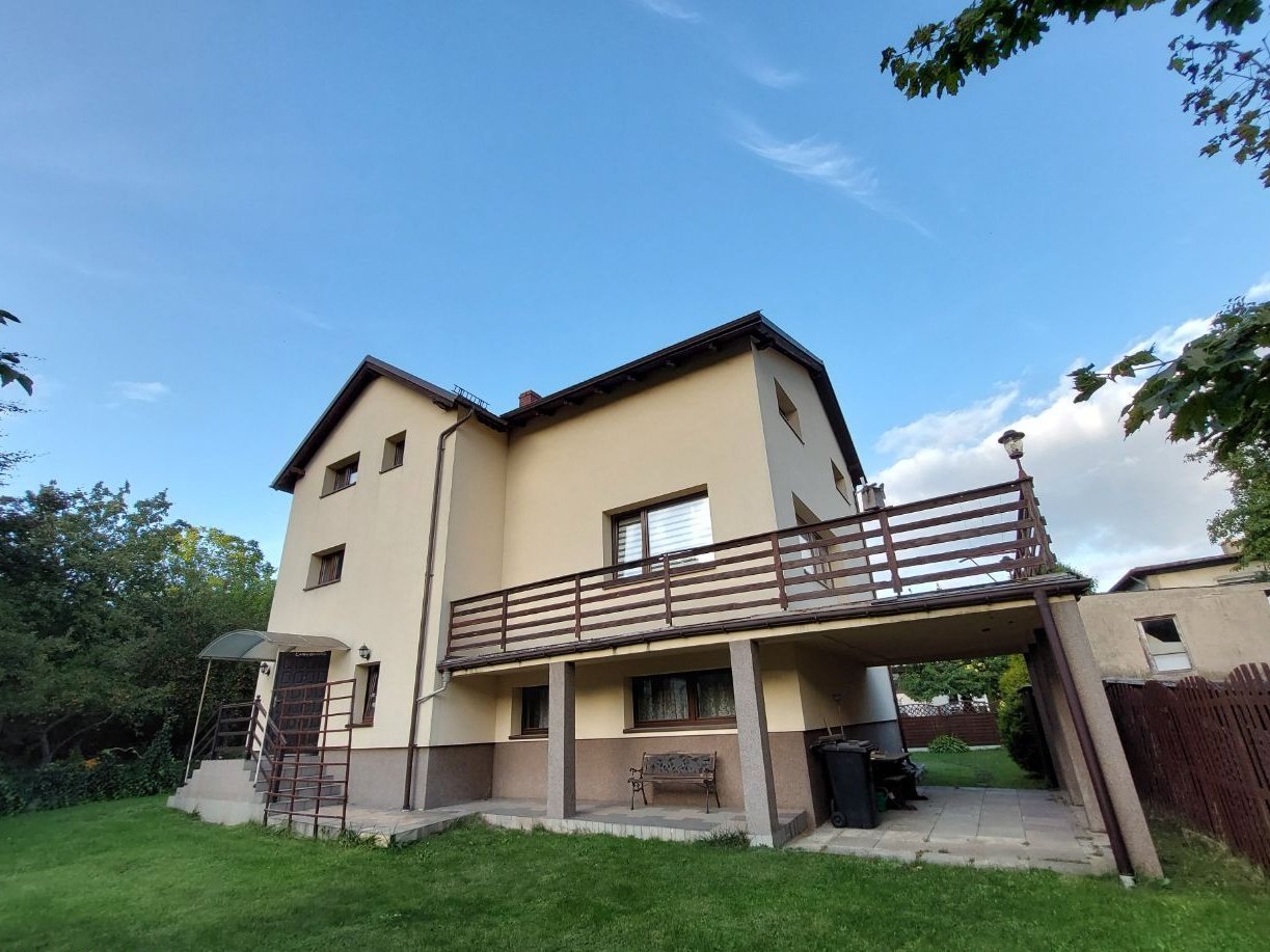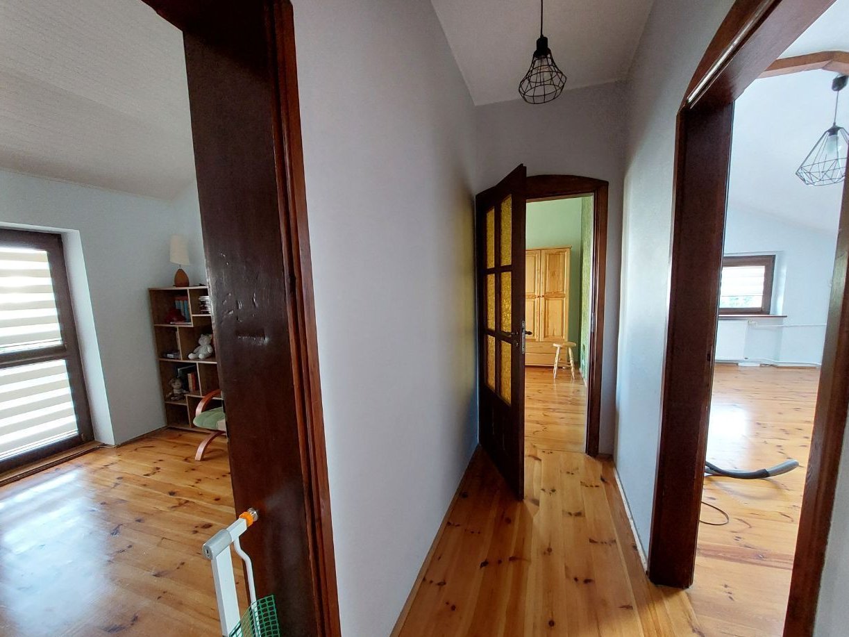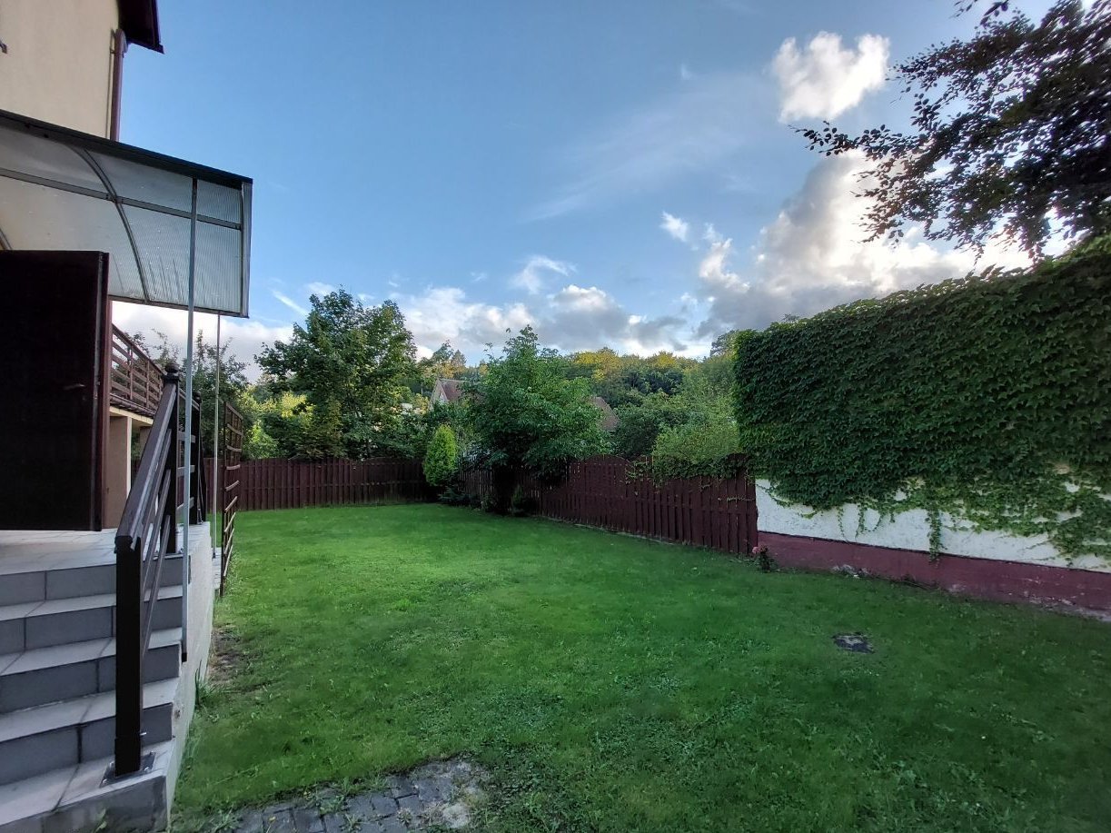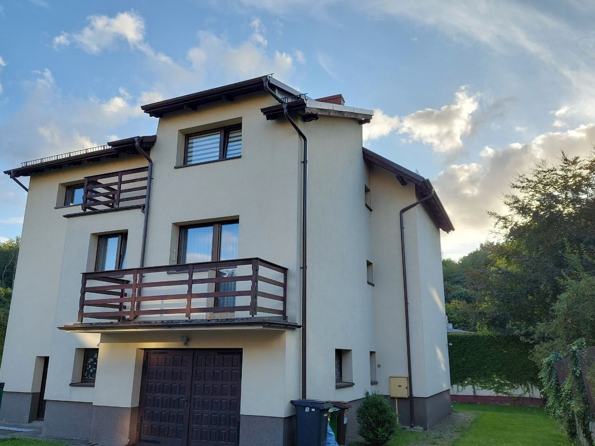Oferujemy na sprzedaż wygodny dom wolnostojący położony w spokojnej, kameralnej części Orłowa. Budynek piętrowy i całkowicie podpiwniczony z 1990 roku (z cegły) posadowiony działce o powierzchni 602 m2. Piwnice "wyciągnięte" powyżej gruntu dzięki czemu pomieszczenia znajdujące się w przyziemiu są widne. W tej części domu jest duży garaż z kotłownią, toaleta i pomieszczenia gospodarcze. Na posadzce terakota. Na kolejnej kondygnacji jest pokój dzienny o powierzchni około 34,5 m2 z wyjściem na taras ok. 25 m2, kuchnia z jadalnią 25,40 m2, obszerny korytarz i wc. W hallu pod schodami szafa. Pokój dzienny położony jest nieco niżej - schodzi się do niego po dwóch stopniach. Okna i taras są od strony południowo - zachodniej, pokój jest świetnie doświetlony. Kuchnia jest wygodna i ustawna - ma balkon o powierzchni ok. 6 m2. Na kolejną kondygnację prowadzą bardzo solidne drewniane schody. Na piętrze (wg planów "poddaszu") znajdują się trzy sypialnie o powierzchniach: 25,40 m2 + 18, 90 m2 + 16,90 m2, łazienka z oknem dachowym 6,80 m2 i wygodny hall. W największym pokoju jest balkon. W łazience jest wanna, pozostawiono przyłącza umożliwiające wstawienie dodatkowo kabiny prysznicowej. Na podłogach w pokojach i korytarzach są deski. Dom był etapami modernizowany. W 2007 roku wymieniono okna i wyremontowano dach - między innymi został docieplony. W 2010 roku docieplono dom styropianem "12". Zamontowano odpowietrzniki dla kaloryferów. Remontu wymaga taras - podłoga i balustrady. Niewątpliwym atutem domu jest położenie w drugiej linii zabudowy - jest oddalony od ulicy. Dom jest wygodnie zorganizowany, daje poczucie przestrzeni. Pokoje są duże i ustawne a korytarze przestronne. Za służebność związaną z drogą dojazdową na działkę wnoszona jest w styczniu każdego roku opłata stała w wysokości 600 zł. Działka jest dobrze utrzymana, ogrodzona siatką. W sąsiedztwie zabudowa jednorodzinna, przedszkole, park. Jest spokojnie i zielono. Niedaleko do środków komunikacji miejskiej (autobusy i trolejbusy), sklepów i targu na Placu Górnośląskim. Jest możliwość rozliczenia części ceny mieszkaniem 1 - 2 pokojowym w Gdyni lub Sopocie, w dogodnej odległości od SKM. Polecam! (Pośrednik odpowiedzialny licencja nr 3851).