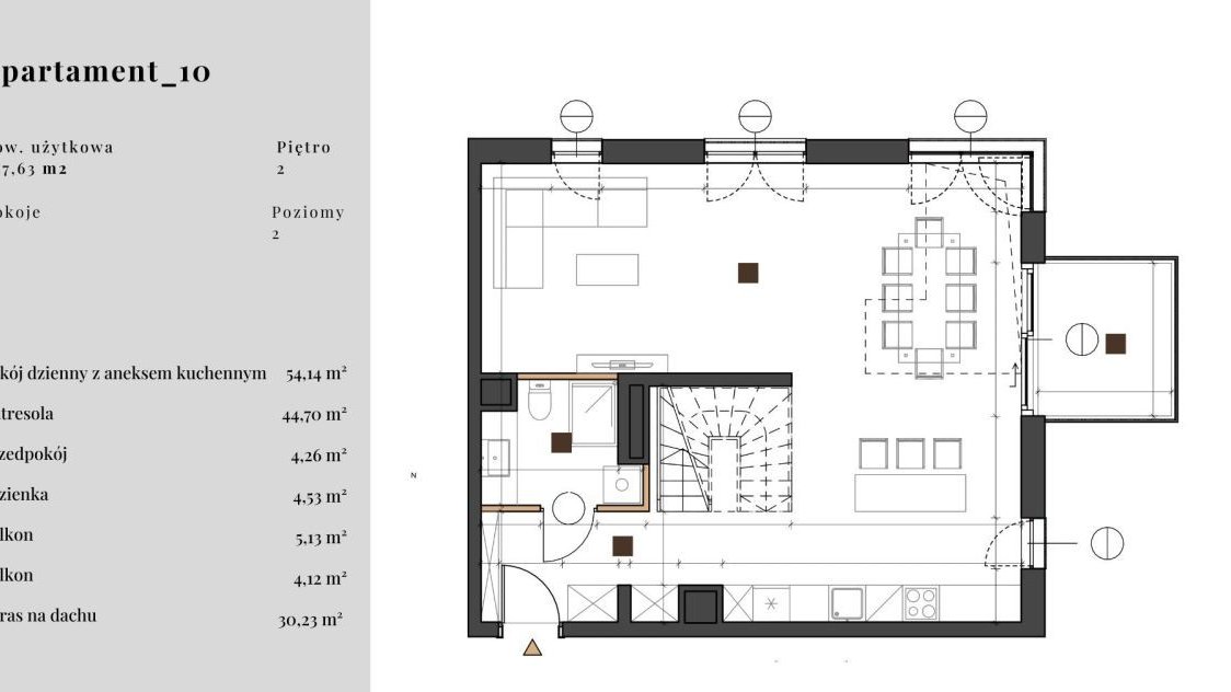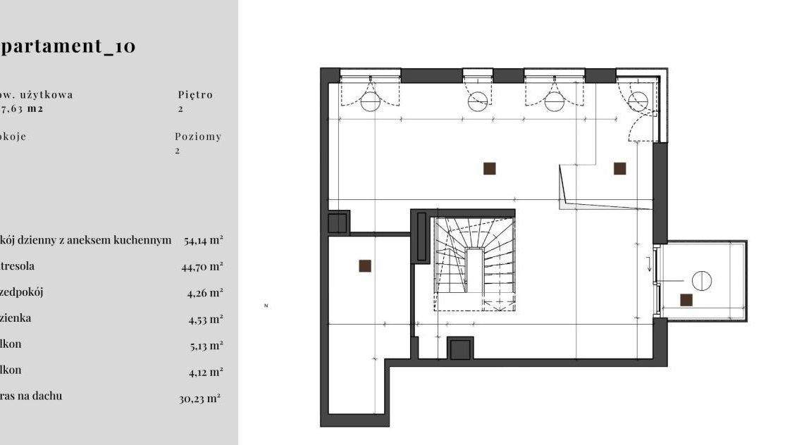 * taras na dachu - 54,26 m².