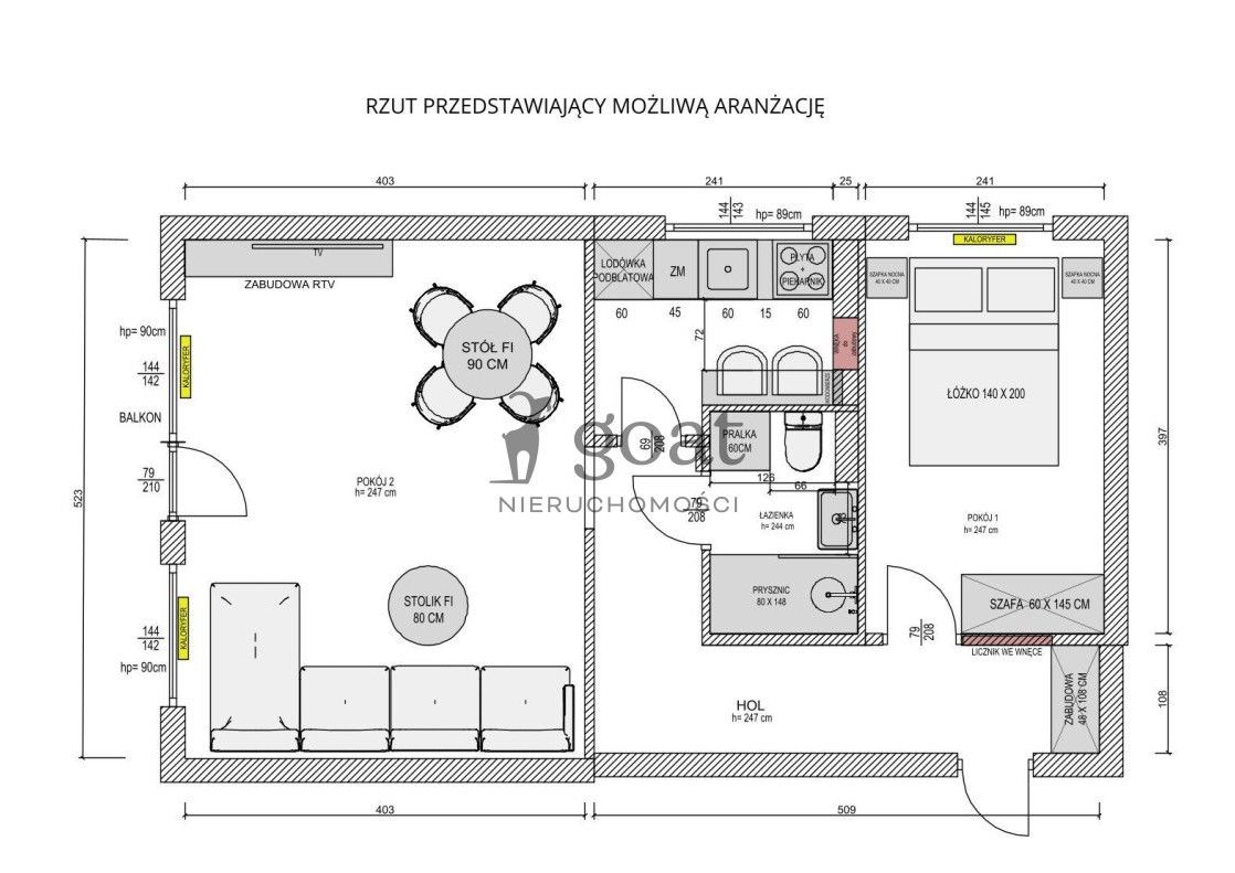 Mieszkanie do całkowitego remontu. Lokal składa się z: dużego salonu (powstałego z połączenia dwóch pokoi - możliwość powrotu do układu 3-pokojowego), sypialni, osobnej kuchni z oknem, łazienki z wanną, przedpokoju.