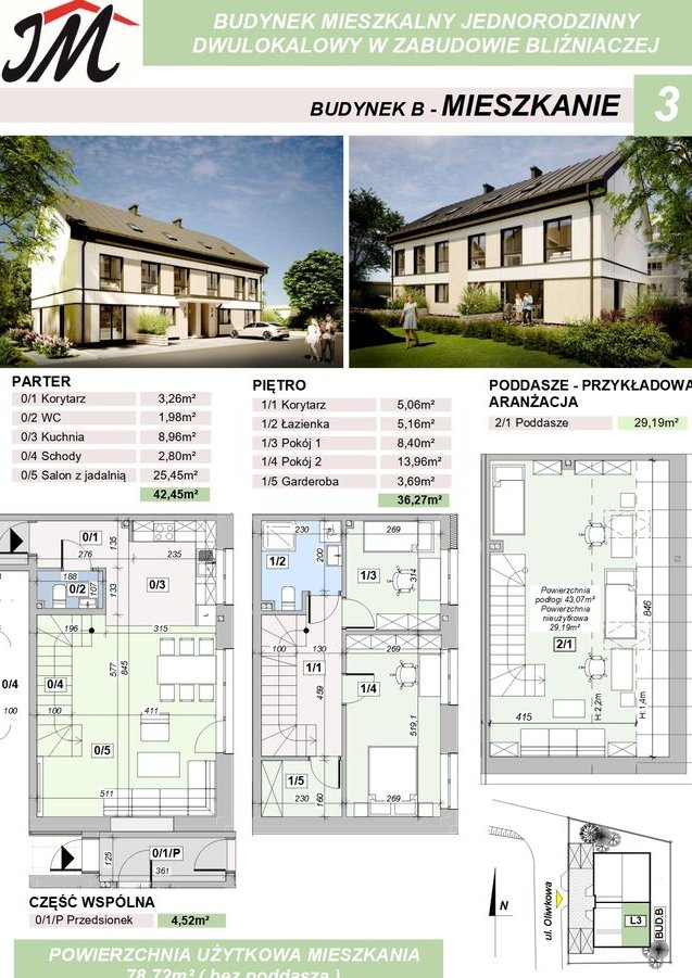 Poznaj lokal M3 przy ul. Oliwkowej – nowe, bezczynszowe mieszkanie w kameralnej zabudowie bliźniaczej (tylko 4 lokale!).