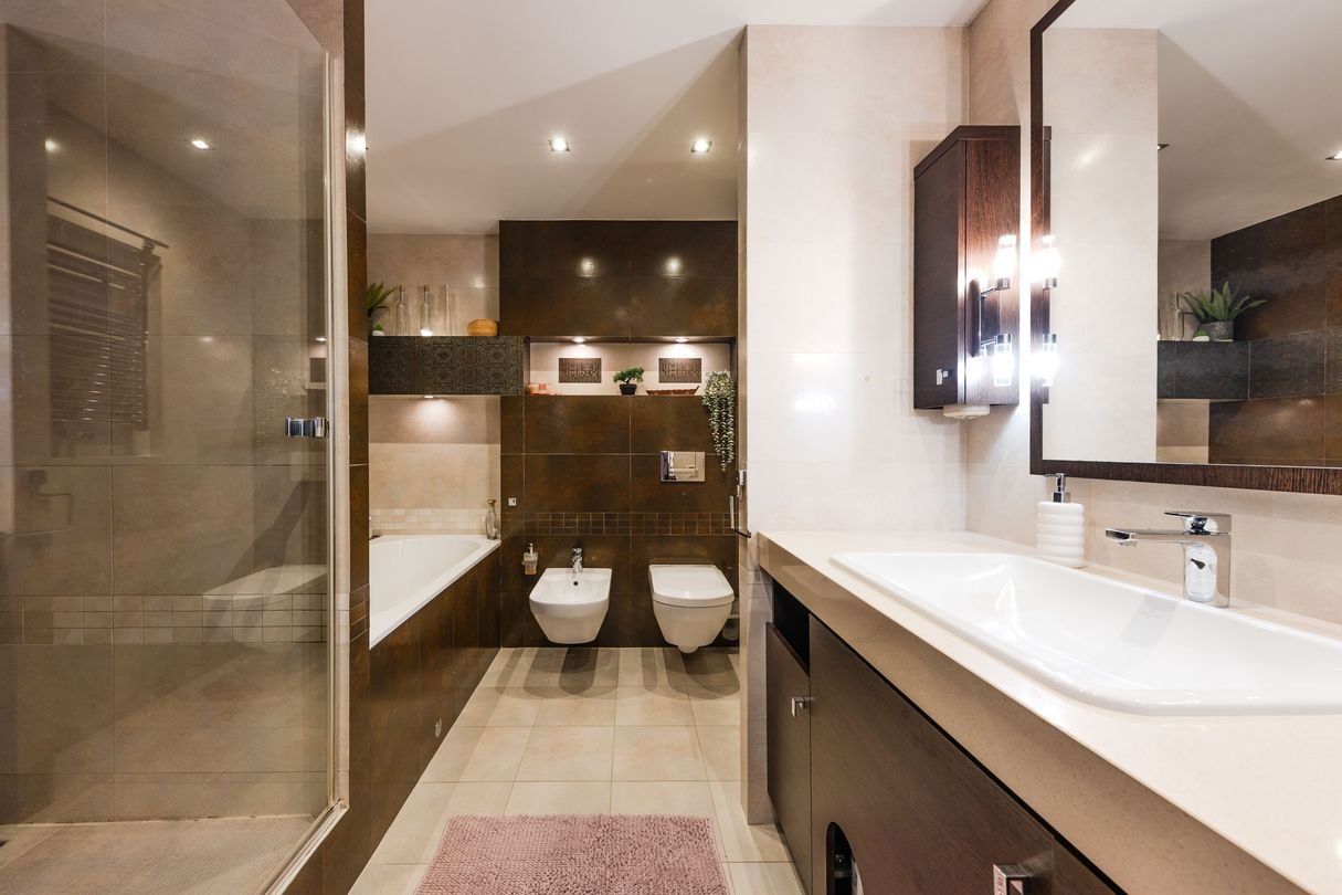 Wygodna łazienka wyposażona w wannę i prysznic.