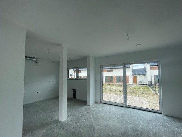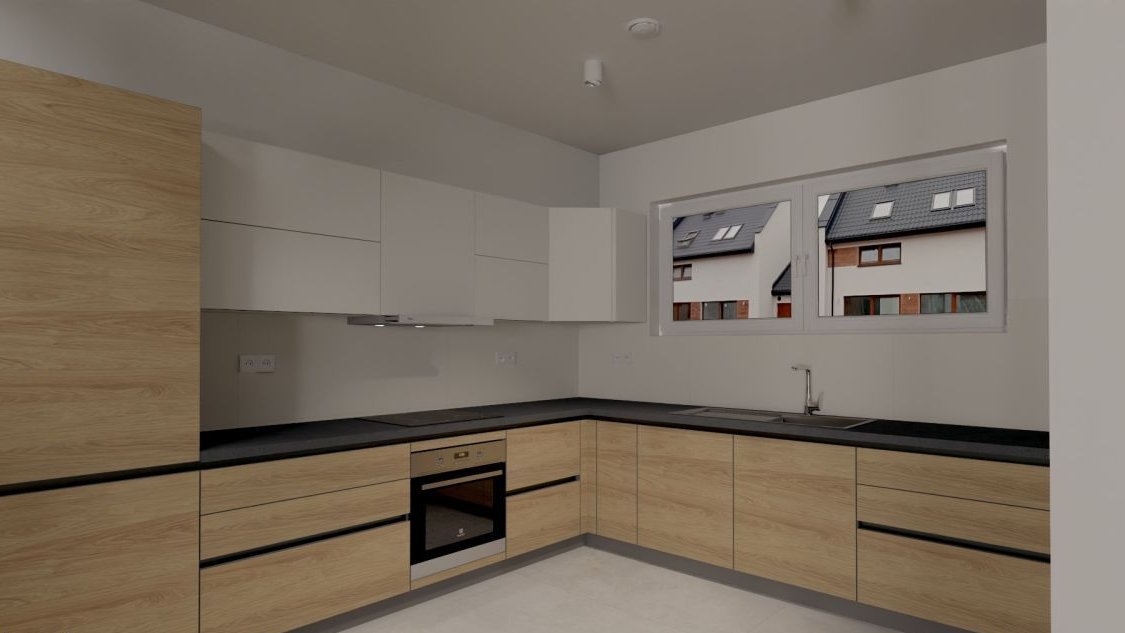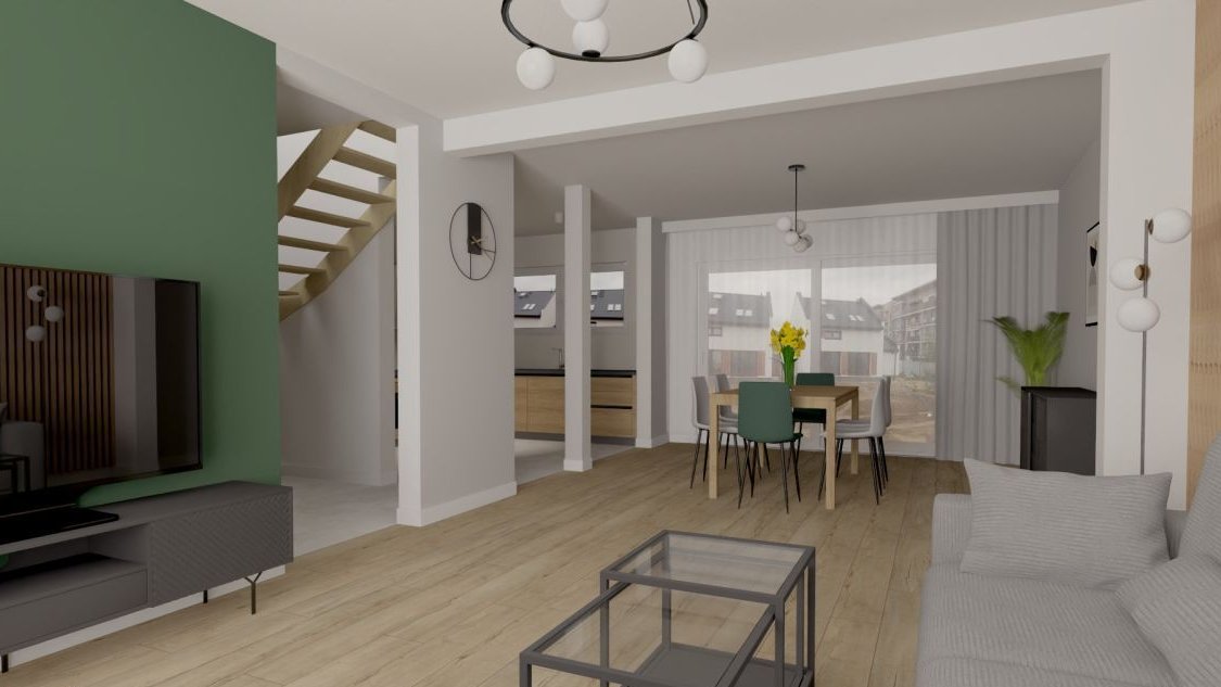 Osiedle nowych domów jednorodzinnych w zabudowie szeregowej na zamkniętym i dozorowanym terenie.