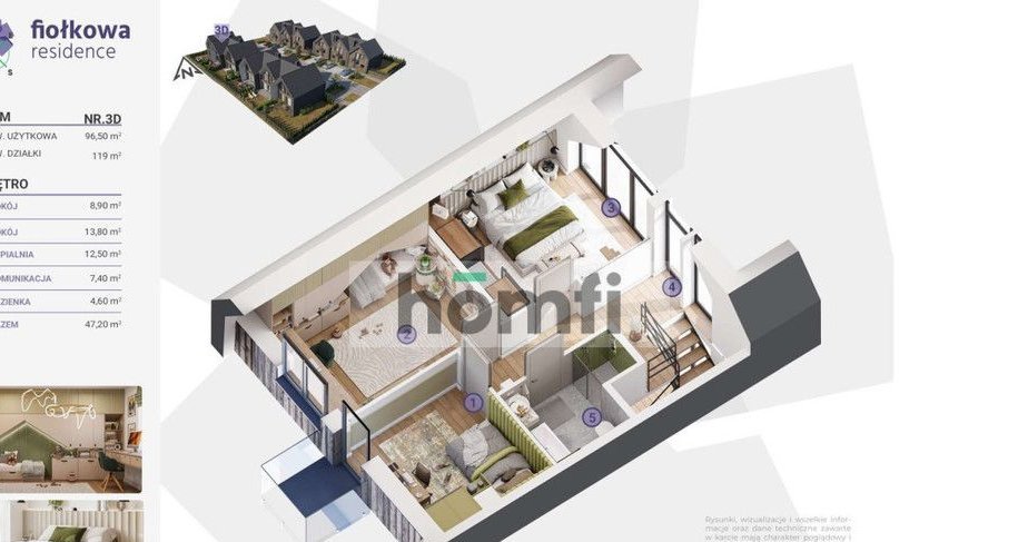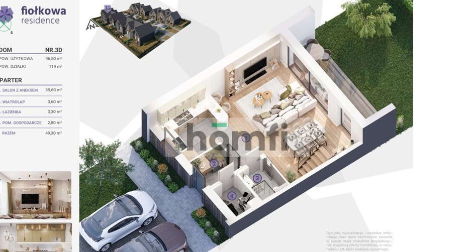 Fiołkowa Residence to kameralne osiedle nowoczesnych domów, położone zaledwie 6,5 km od granicy Krakowa. To idealna propozycja dla osób szukających wygodnego i spokojnego miejsca do życia w sąsiedztwie miasta, bez kompromisów w zakresie komfortu i jakości wykonania.