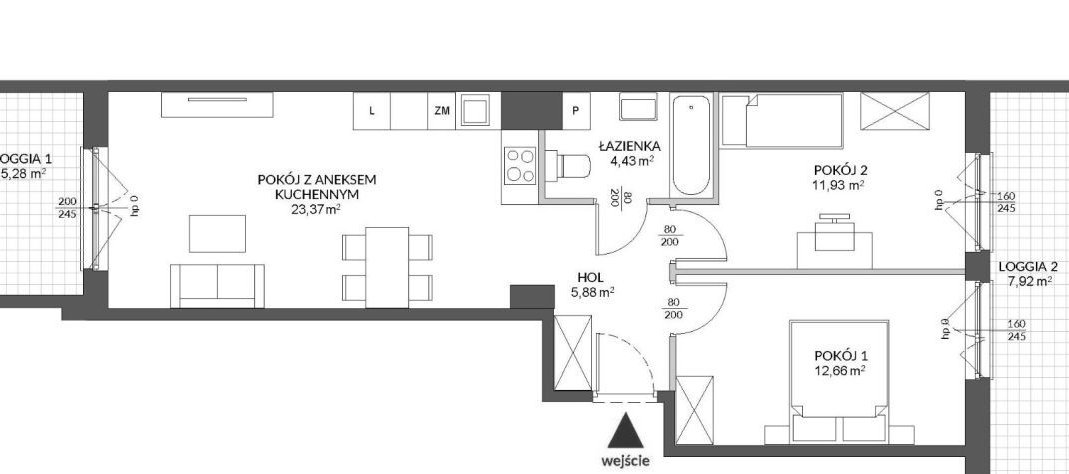 Prezentujemy Państwu kompaktowe mieszkanie 3 pokojowe o powierzchni 59,53 m2, z dwiema Loggiami! usytuowane na 2 piętrze w kameralnym 3 piętrowym budynku
