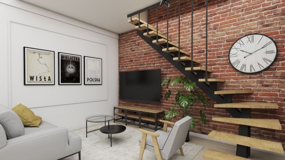 Mieszkanie z balkonem znajduje się na pierwszym i drugim piętrze.