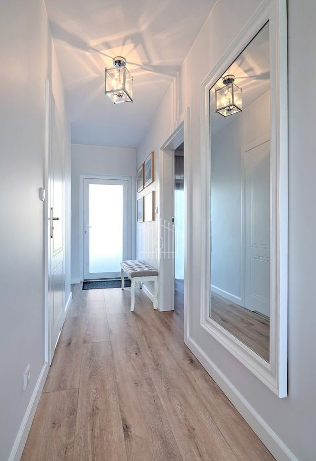 Na podłogach położono wysokiej jakości panele, a w całym mieszkaniu zastosowano ogrzewanie podłogowe zasilane piecem gazowym, które zapewnia komfort cieplny i oszczędność eksploatacji.