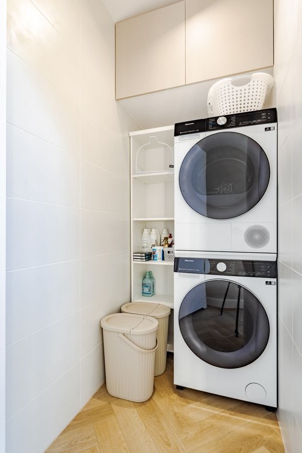 Do apartamentów przypisane są po dwa zewnętrzne miejsca postojowe dla samochodów.
