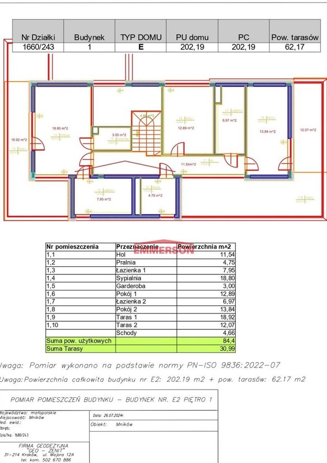 I PIĘTRO: o powierzchni 84,4 m2, obejmuje: