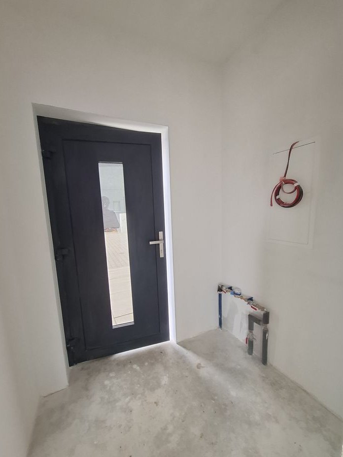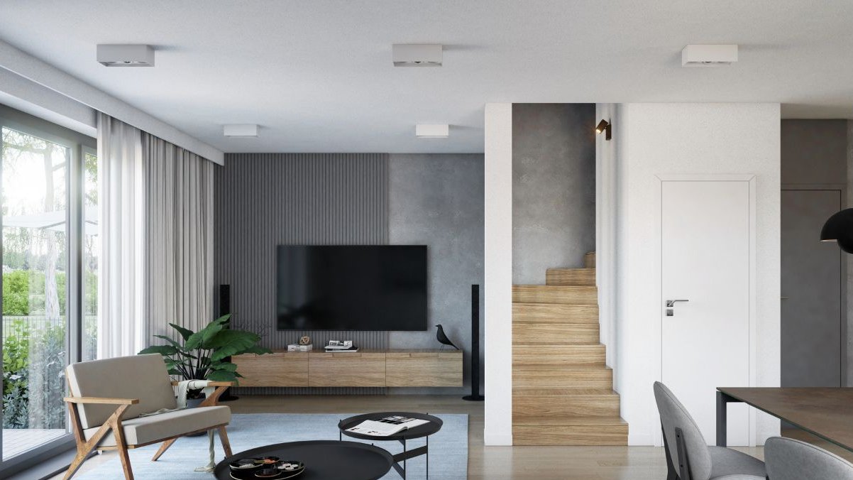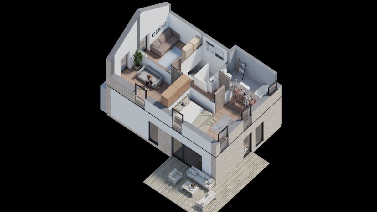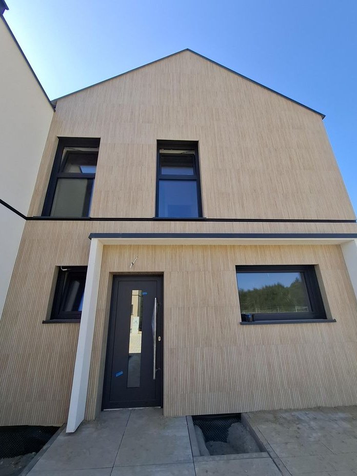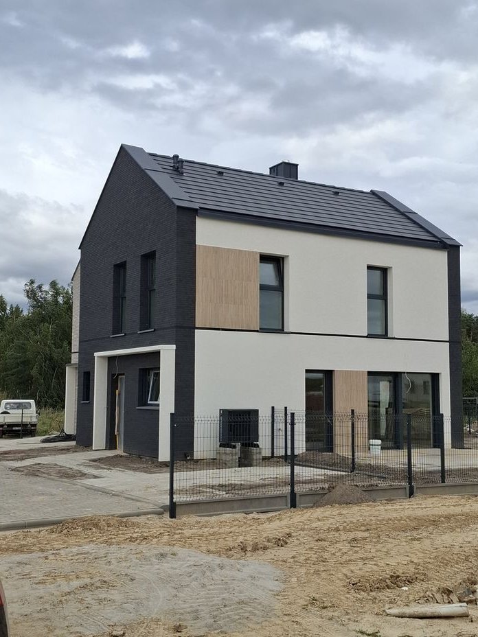 DOM w nowoczesnym designie oferowany jest w stanie deweloperskim o podwyższonym standardzie z żaluzjami fasadowymi na parterze.